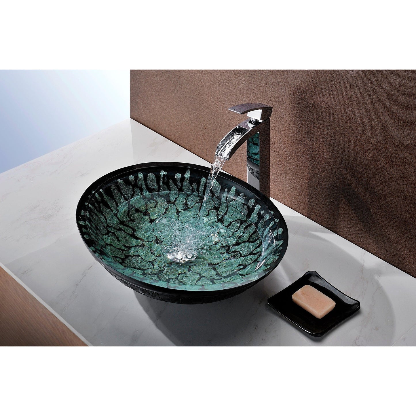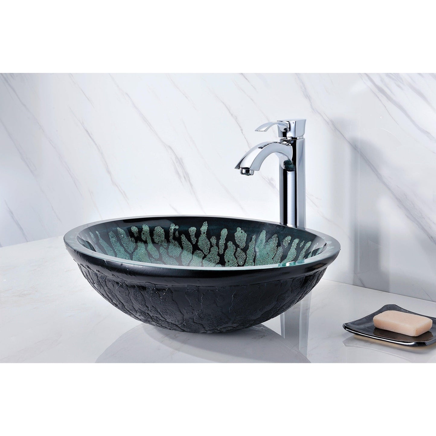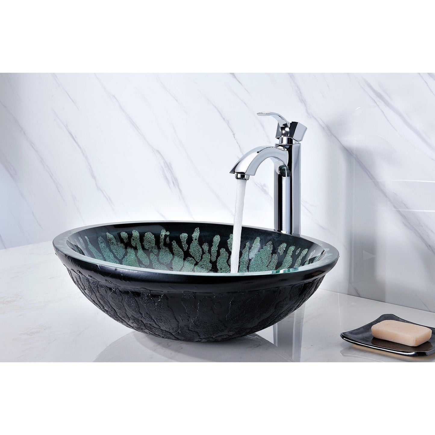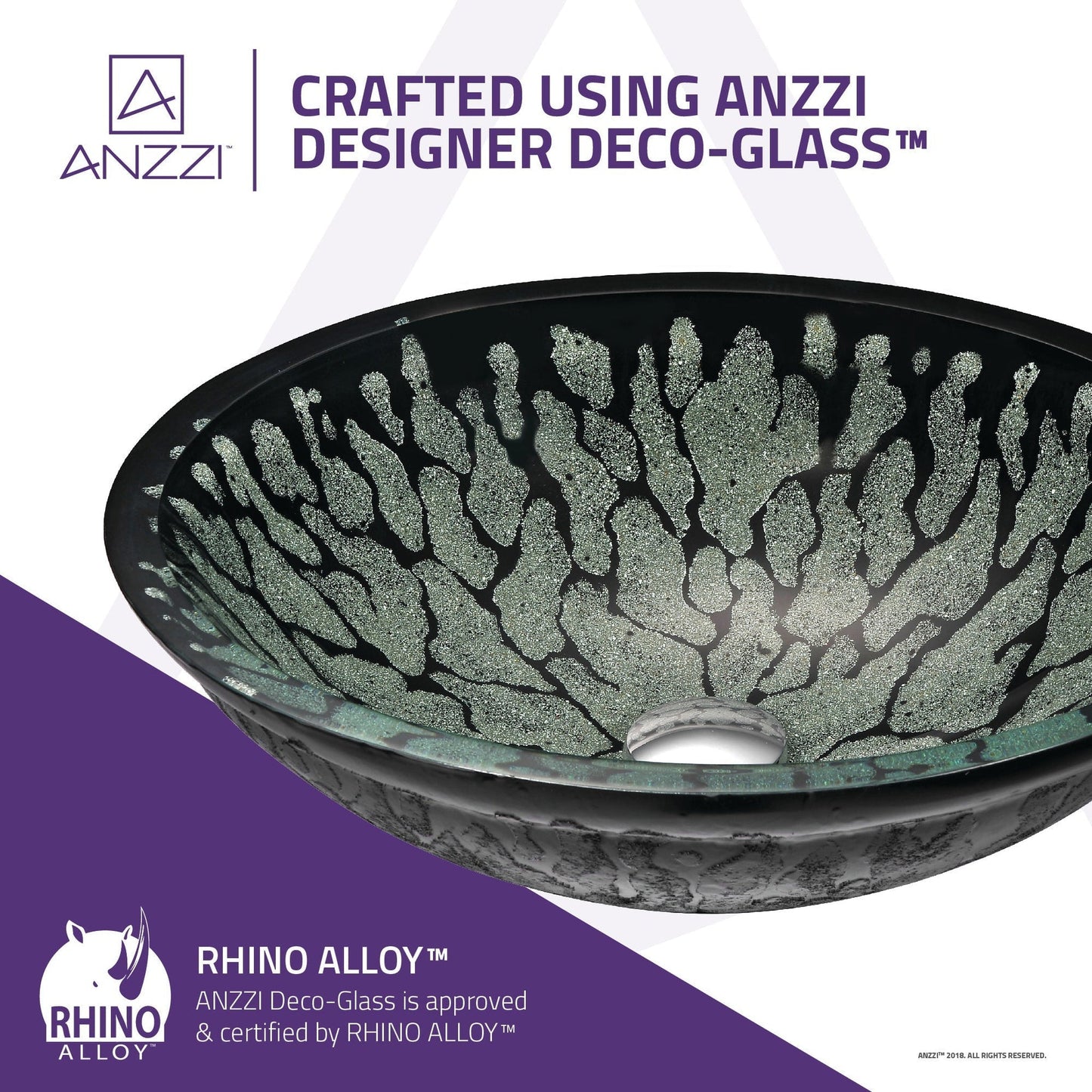 The ANZZI Patuvendi Series sink is a traditionally crafted round vessel sink adorned in a Lustrous Black Finish. Each ANZZI vessel sink is formed using RHINO ALLOY certified high tempered Deco-Glass material. The result is a dynamically shaped and captivating vessel centerpiece for any bathroom counter.