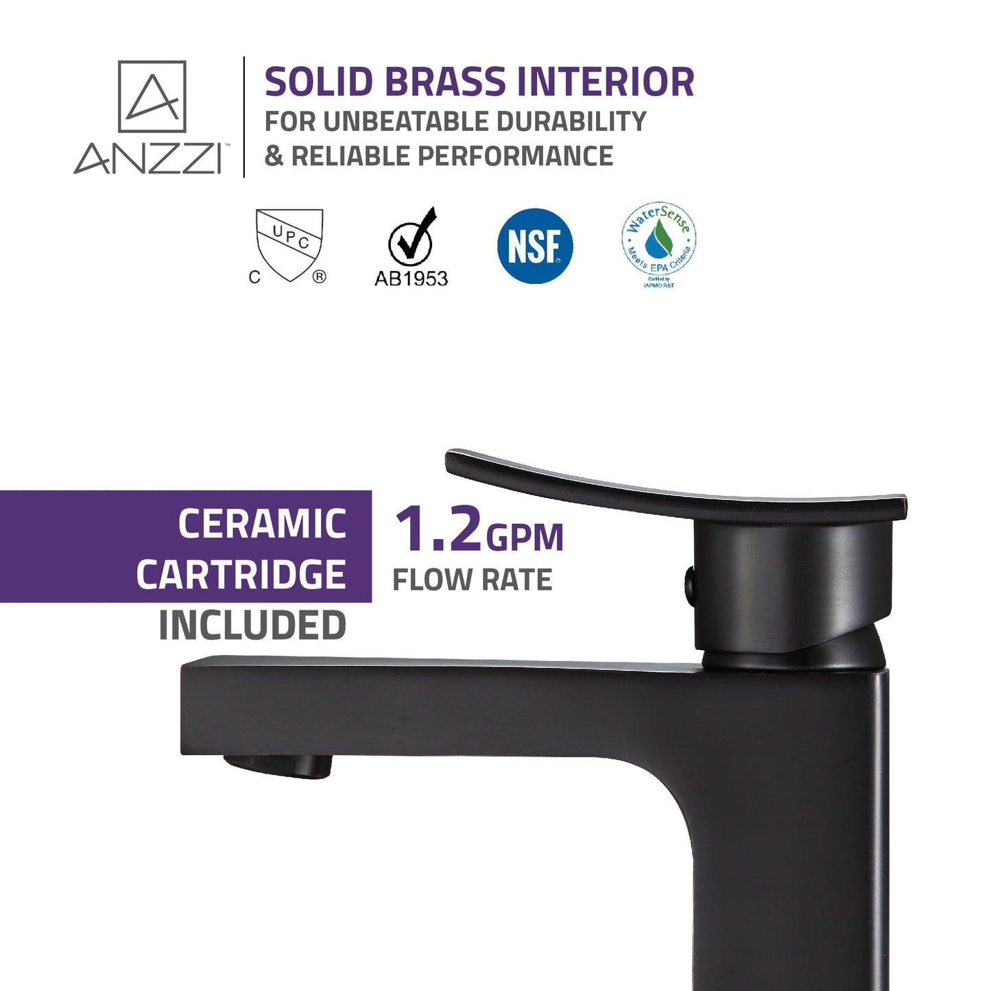 ANZZI is committed to introducing the latest in European bath fixture design to the North American home. ANZZI presents the Promenade single handle bathroom sink faucet. Crafted using RHINO ALLOY certified brass interior, marine grade ceramic disk and oil rubbed bronze lead-free rust resistant finish. The elegance and style of our ANZZI faucets is matched by their proven performance and reliability, which is why our faucets are backed by the ANZZI Limited Lifetime Warranty. Become a member of the ANZZI family and experience why Perfection is our Tradition.