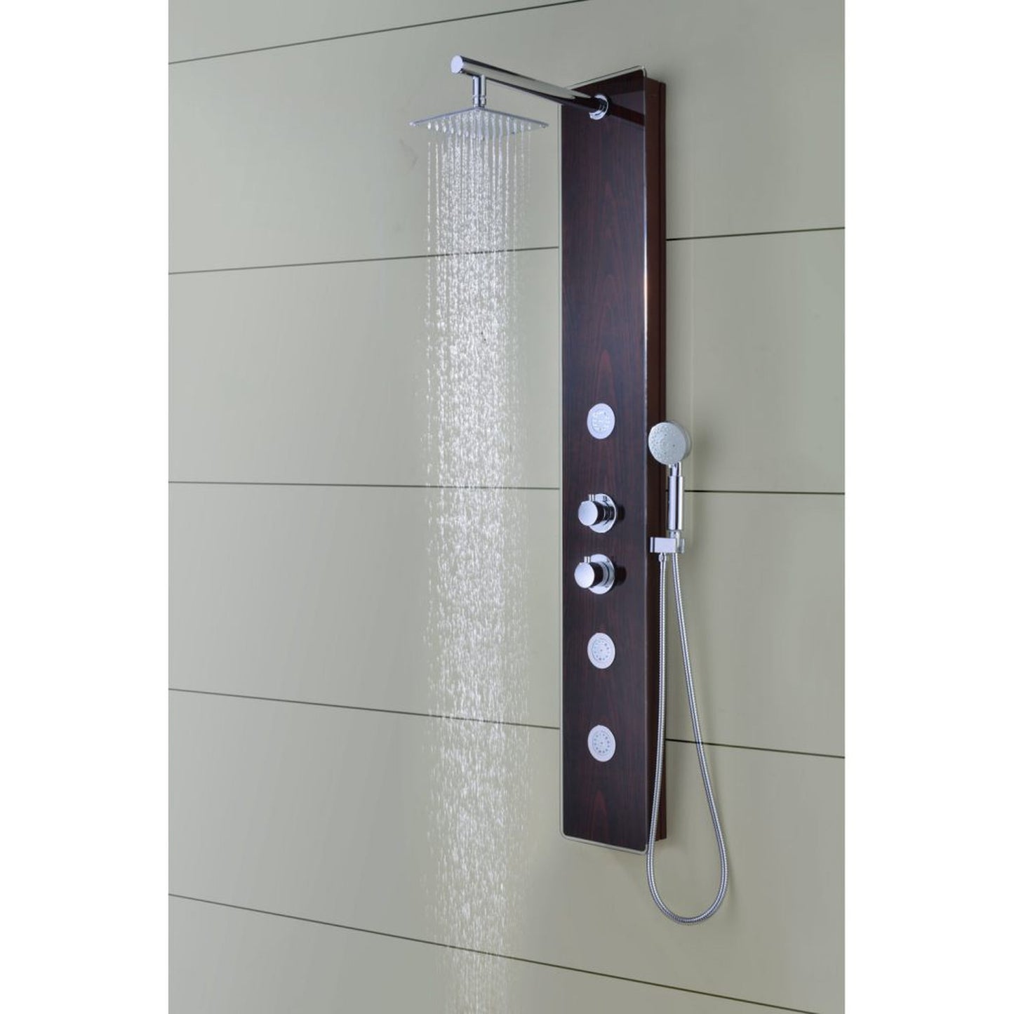 ANZZI Pure Series 59" Mahogany 3-Jetted Full Body Shower Panel With Heavy Rain Shower Head and Euro-Grip Hand Sprayer