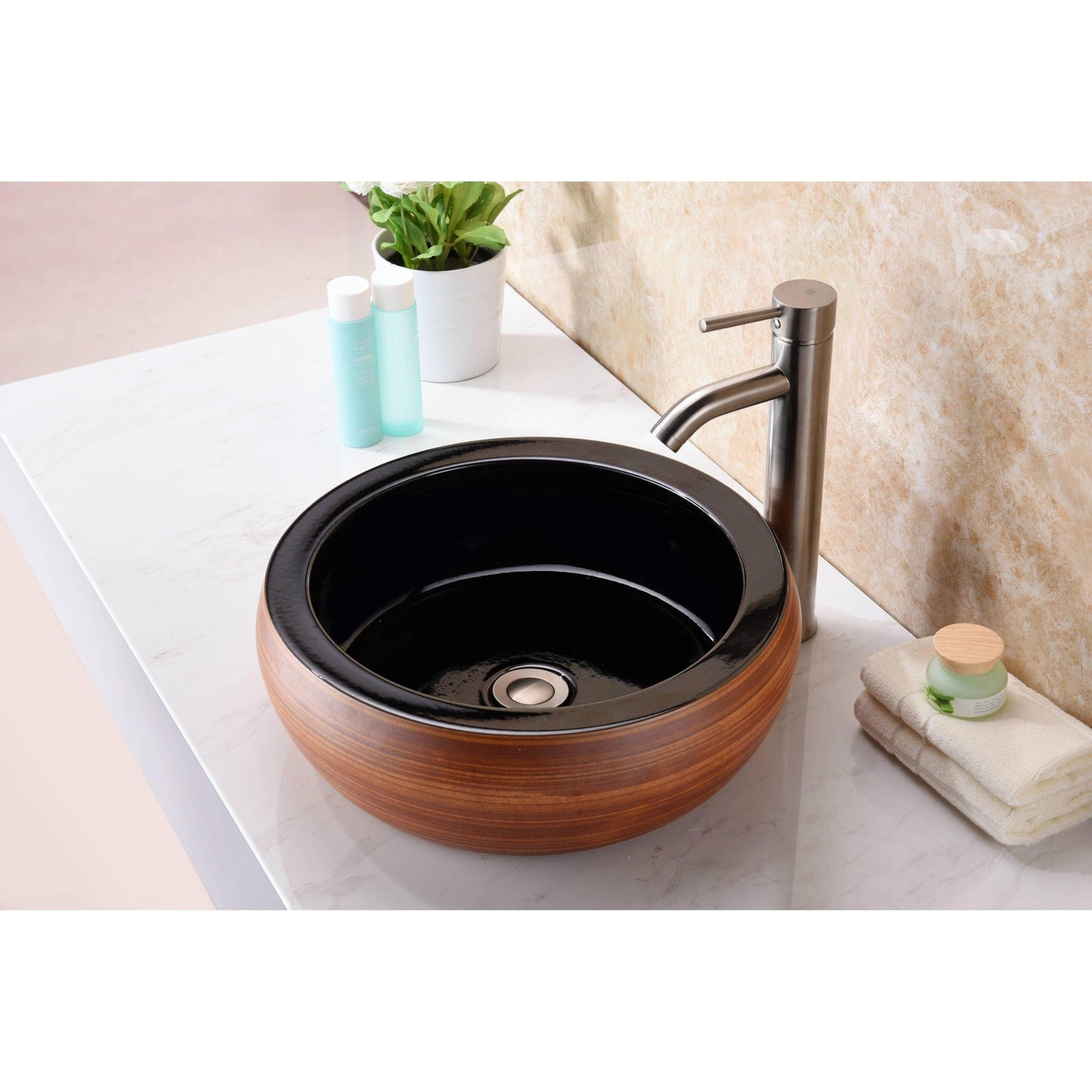 The ANZZI Regalia Series sink is a traditionally crafted round vessel sink adorned in a Black/Swirled Fusion finish. Each ANZZI vessel sink is formed using RHINO ALLOY certified high tempered Deco-Glass material. The result is an elegantly shaped and captivating vessel centerpiece for any bathroom counter.