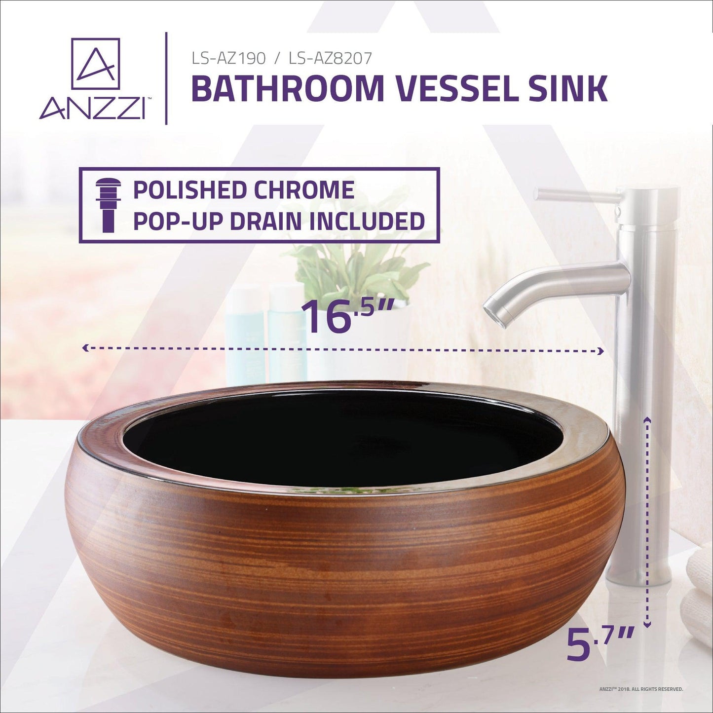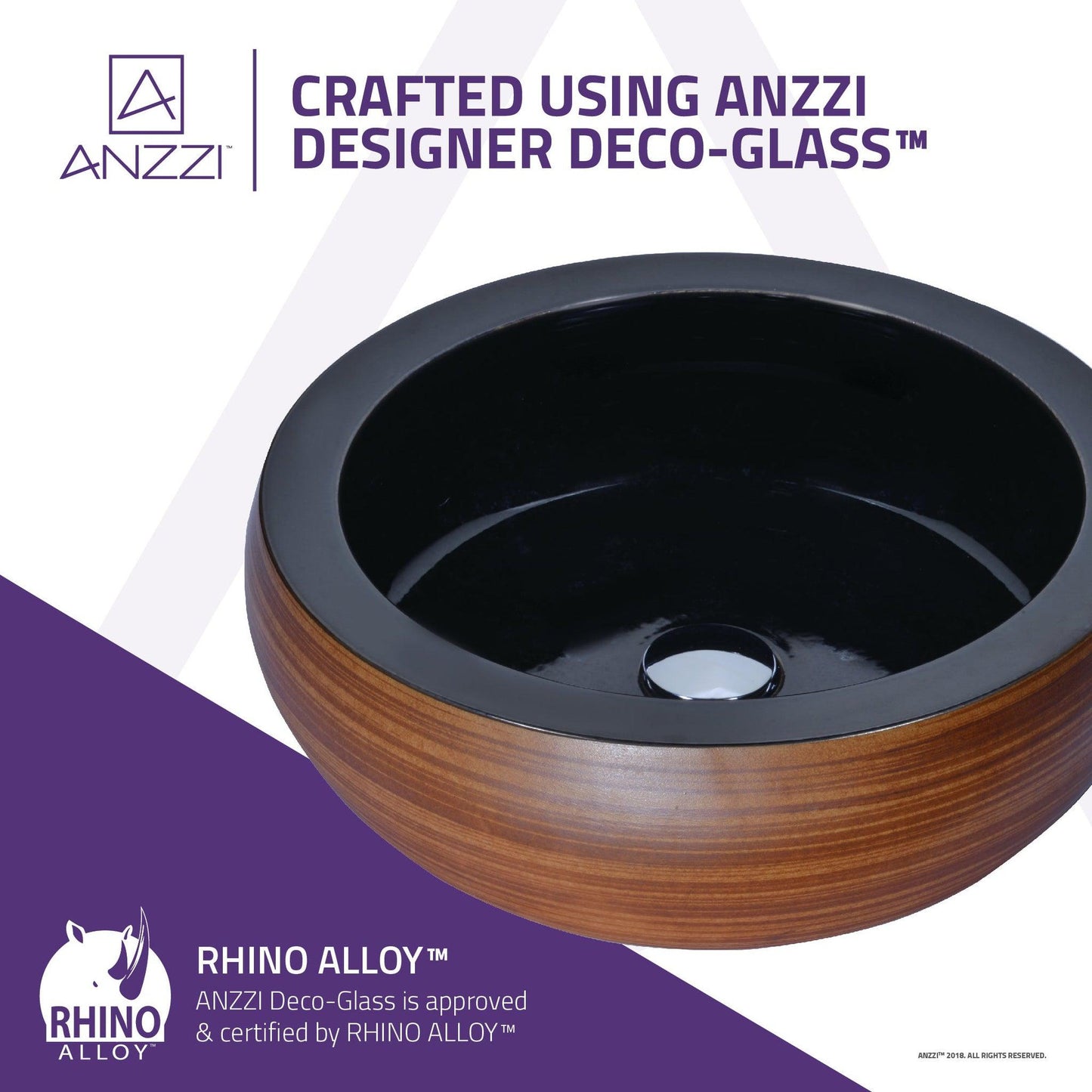 ANZZI Regalia Series 17" x 17" Round Black Fusion Deco-Glass Vessel Sink With Polished Chrome Pop-Up Drain