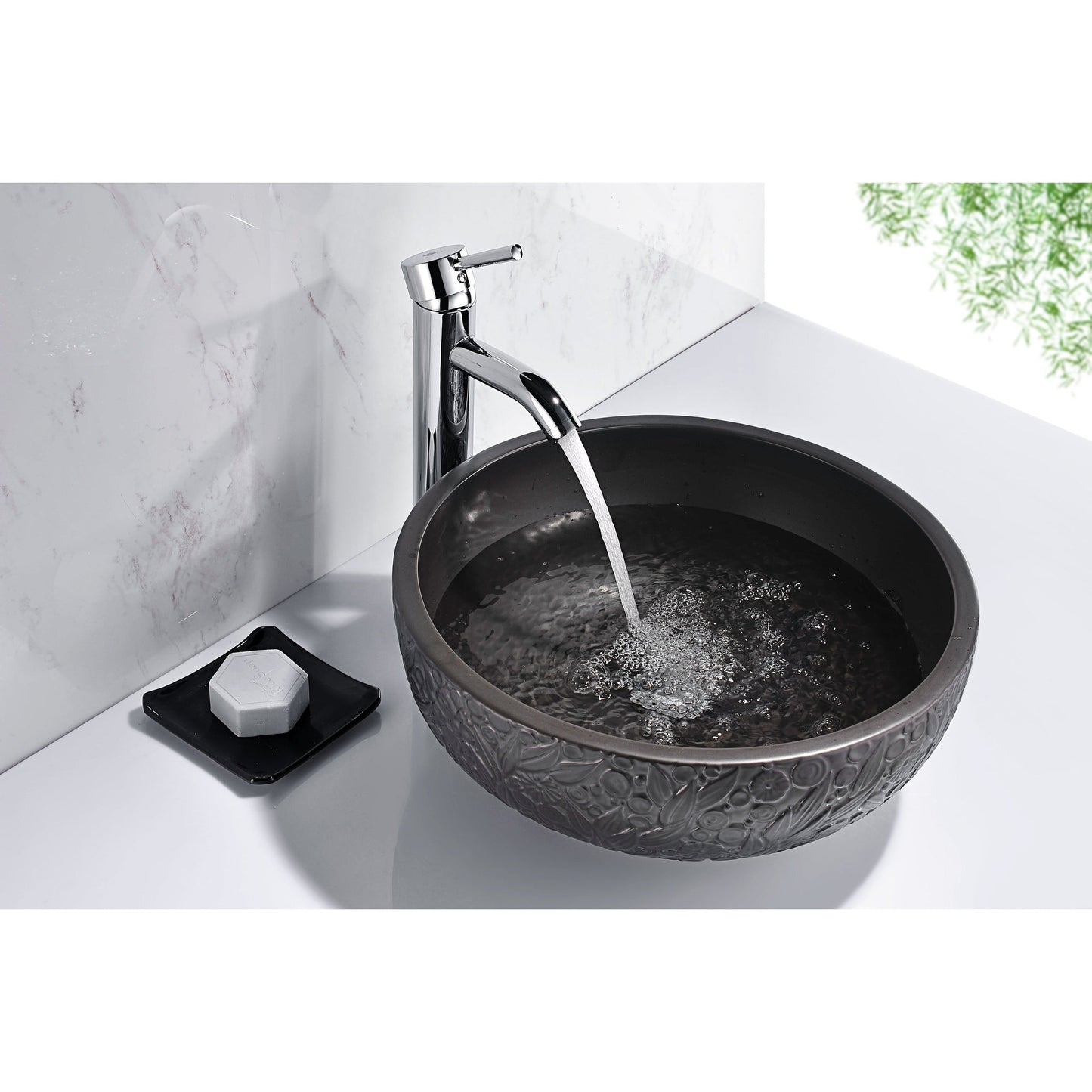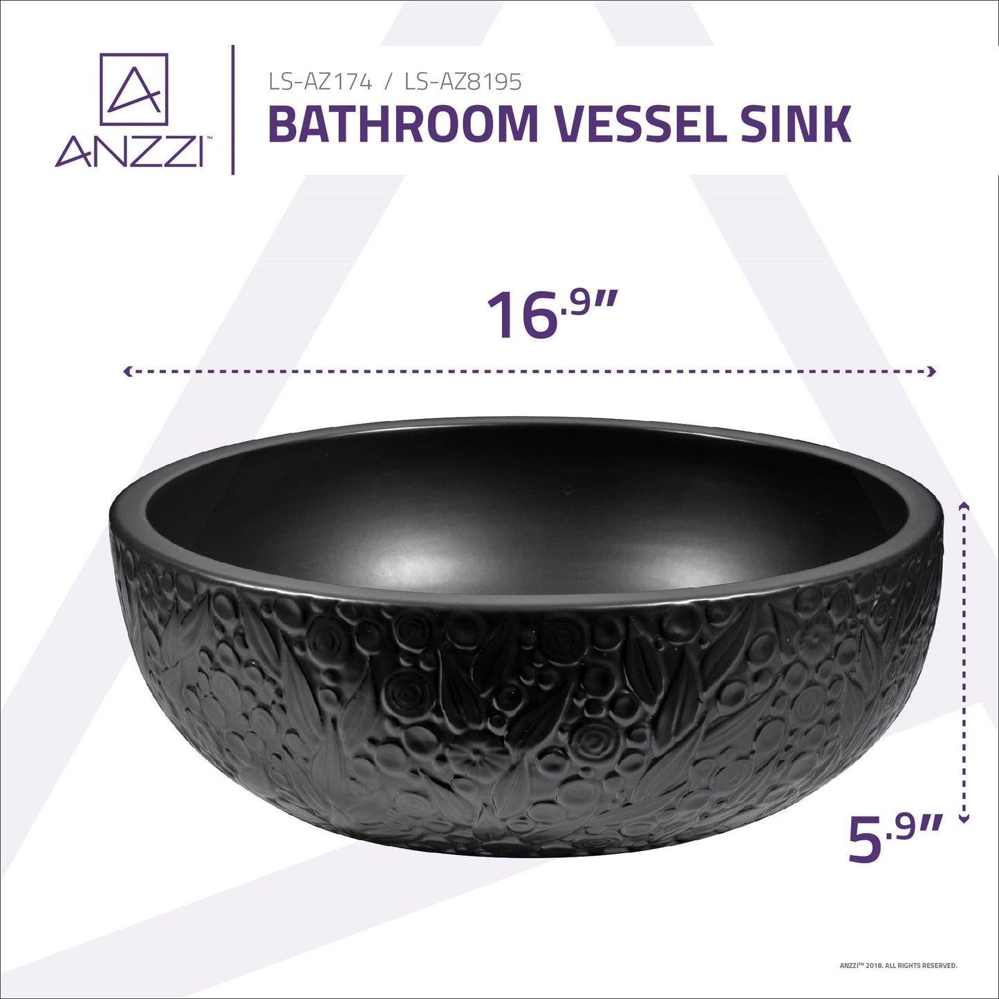 ANZZI Stellar Series 17" x 17" Round Black Vessel Sink