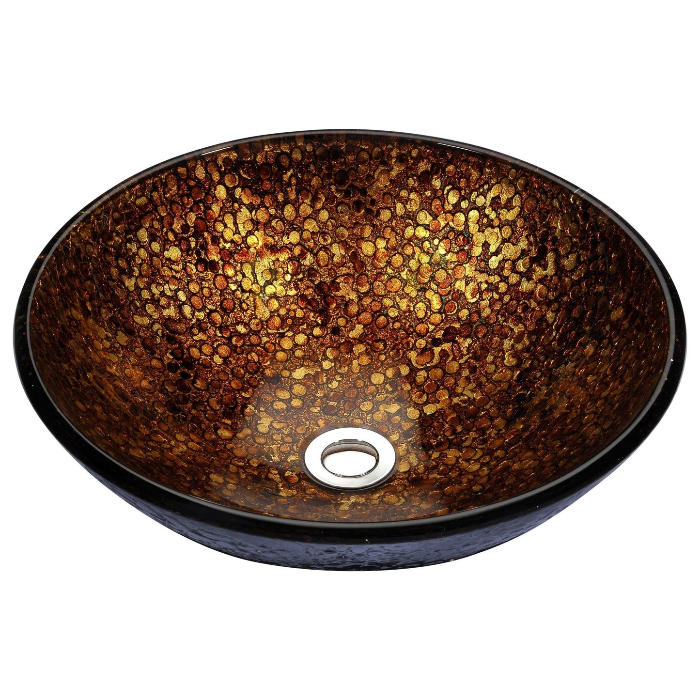 The ANZZI Stellar Series sink is a traditionally crafted round vessel sink adorned in an Idol Gold finish. Each ANZZI vessel sink is formed using RHINO ALLOY certified high tempered Deco-Glass material. The result is an elegantly shaped and captivating vessel centerpiece for any bathroom counter.