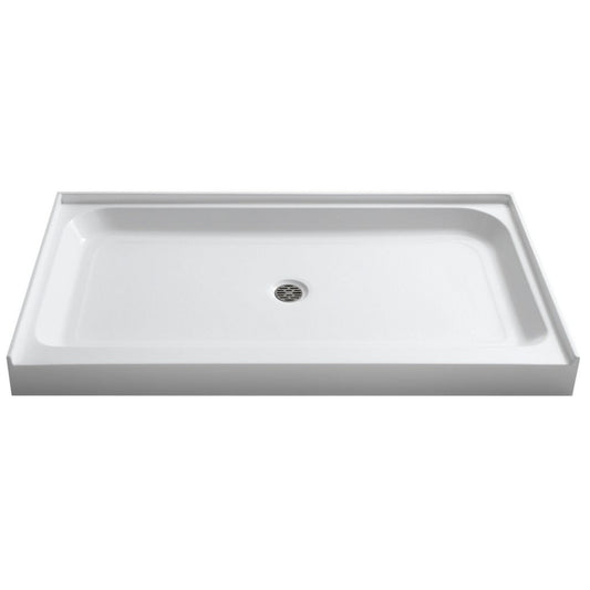 ANZZI Tier Series 36" x 60" Center Drain Single Threshold White Shower Base With Built-in Tile Flange