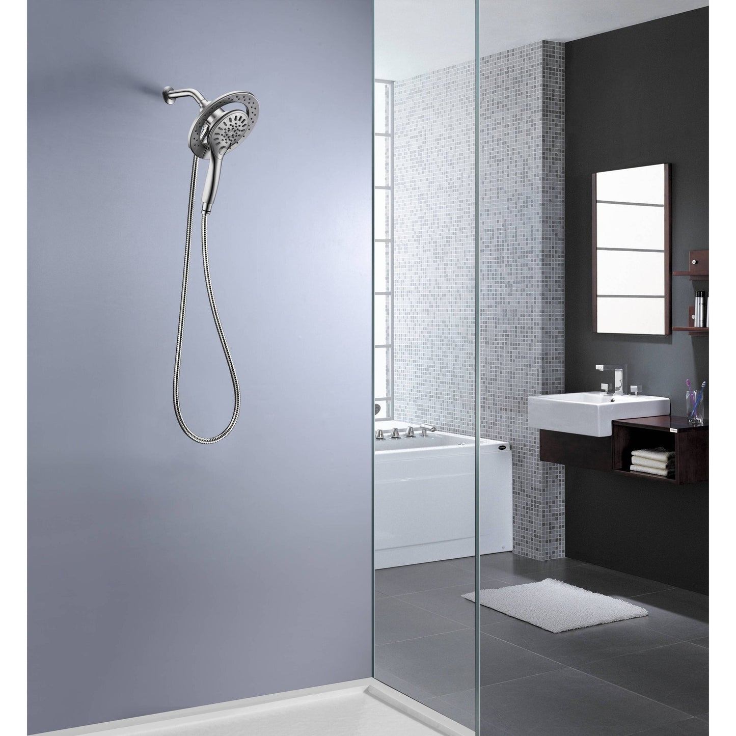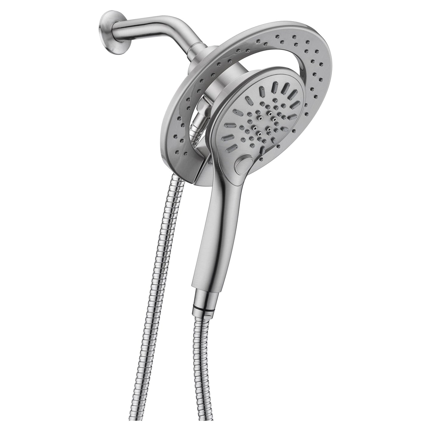ANZZI’s innovative dual-mode shower system has a groundbreaking magnetic diverter design that automatically shifts the water spray from the showerhead to the handheld wand when you lift the wand from the dock. There’s no buttons, handles, or levers like all the other brands! The swiveling showerhead has three spray patterns — full body, massage, and jet — usable with the wand attached or detached, for six spray functions total. Wand nests securely in the showerhead thanks to the magnetic dock.