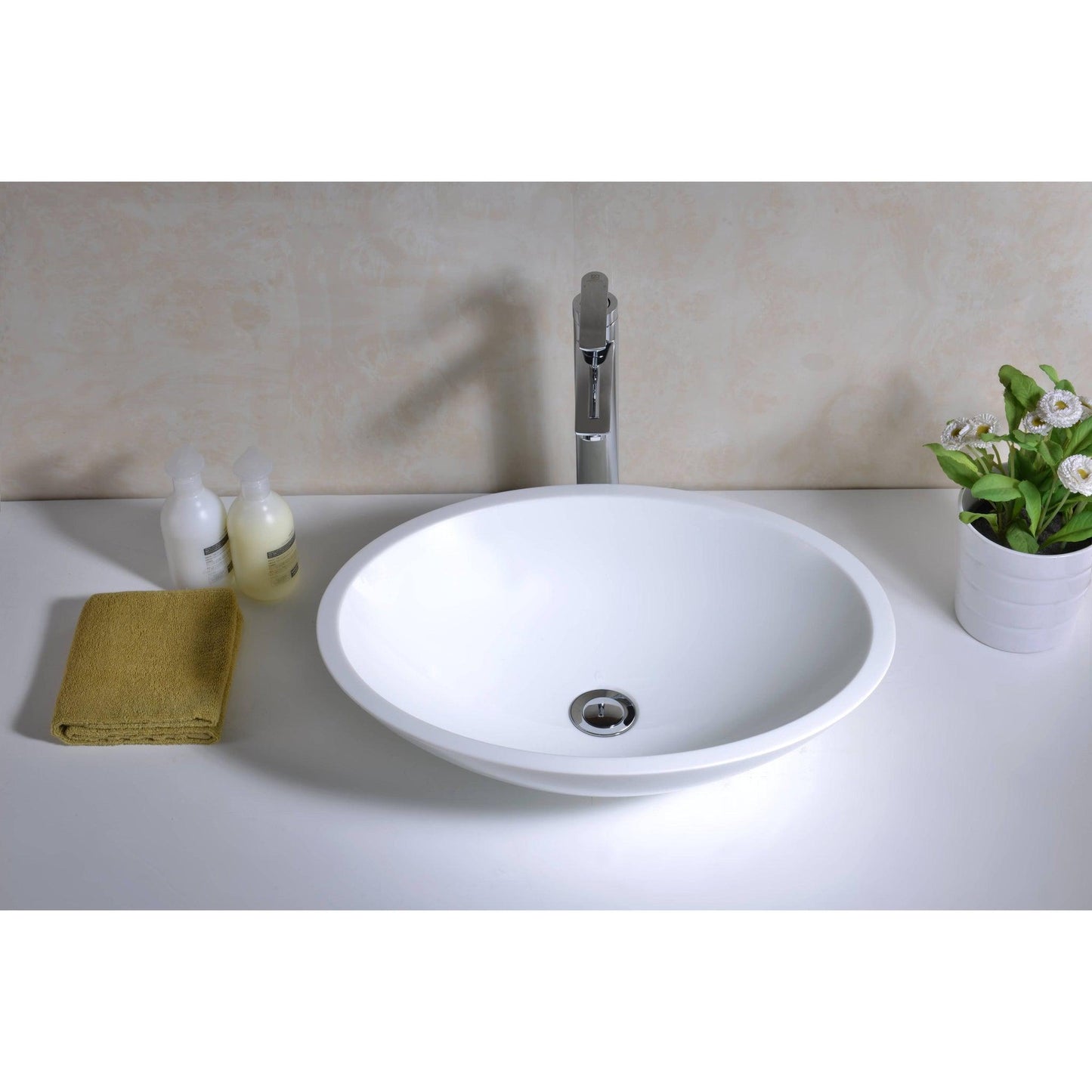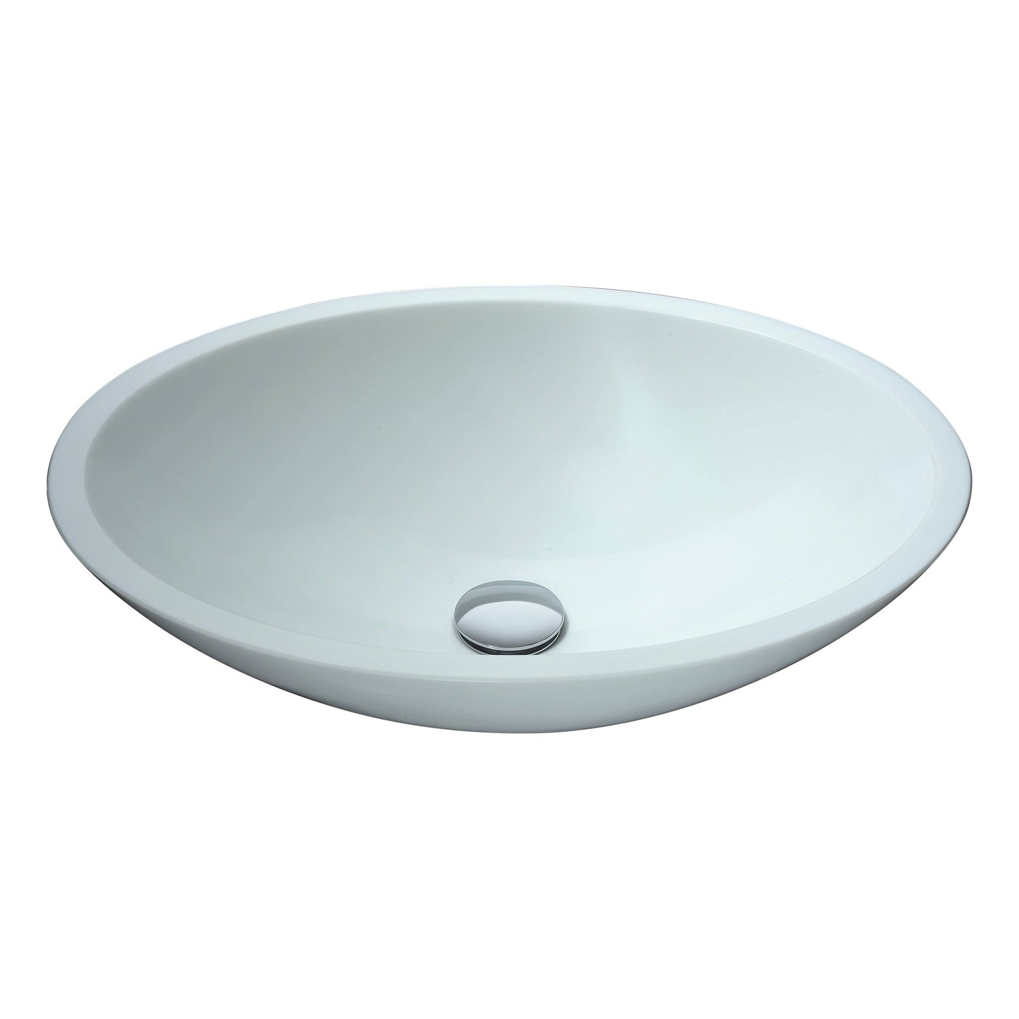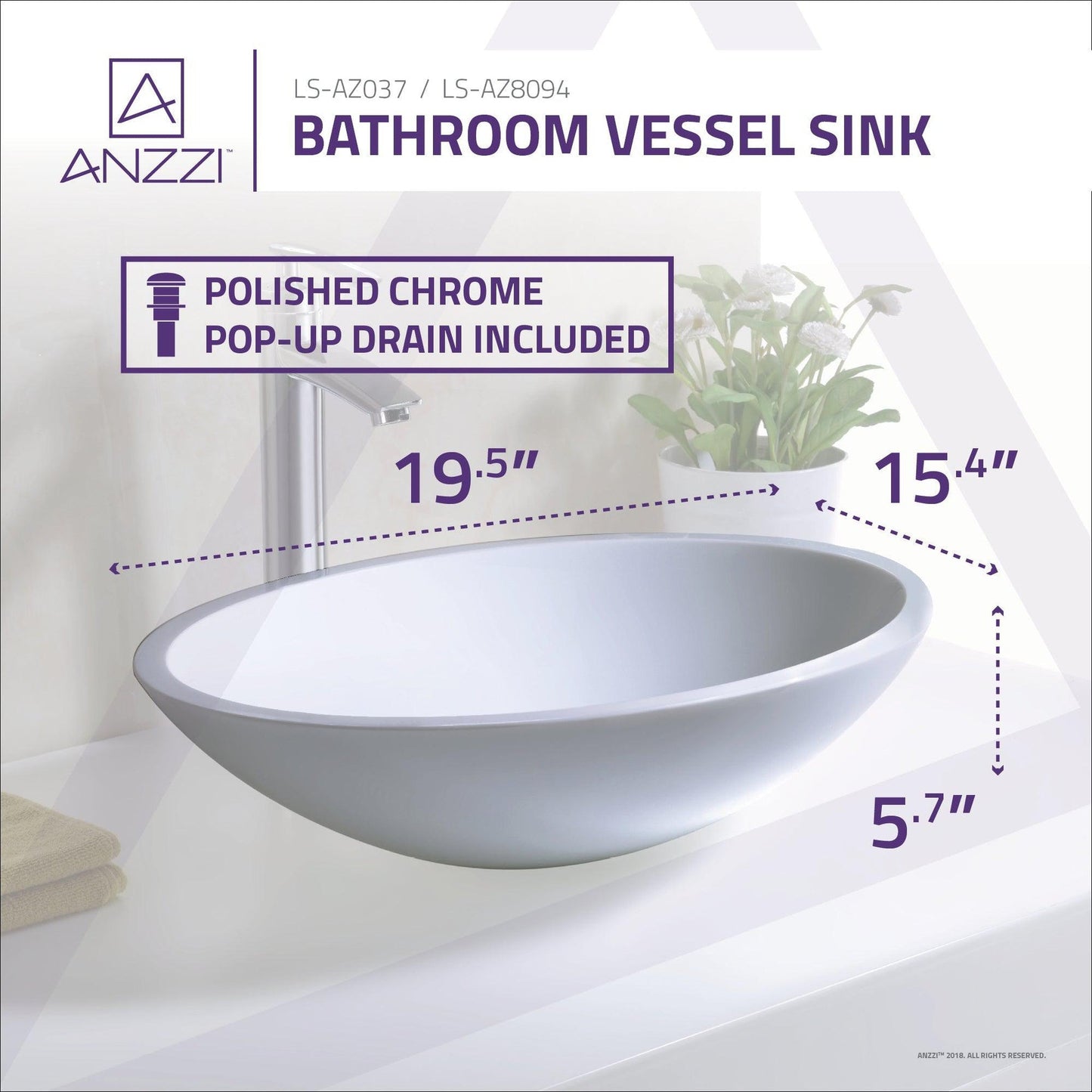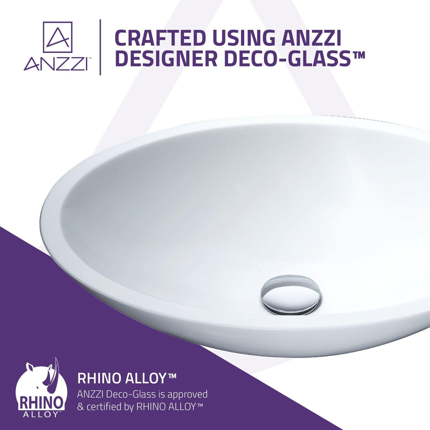 ANZZI Warika Series 20" x 15" Round White Deco-Glass Vessel Sink With Polished Chrome Pop-Up Drain