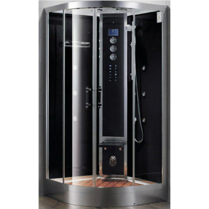 The Athena WS-102 steam shower is a spacious 1 person corner shower featuring a high-output 4.5kW steam engine, 6 acupressure body jets, and a fold-down oak seat. The WS-102 steam shower features a solid oak ceiling and floor panels, an oversized rainfall shower, chromotherapy lighting, and aromatherapy. heavy-duty sliding glass doors and polished aluminum trim provide distinct luxury to any bathroom.