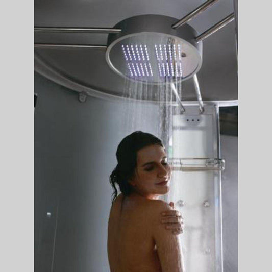 Chromatherapy Lighting Overhead LED chromatherapy lighting is built into the rainfall ceiling shower. Seven different colors enhance the mood and stimulate relaxation. |
