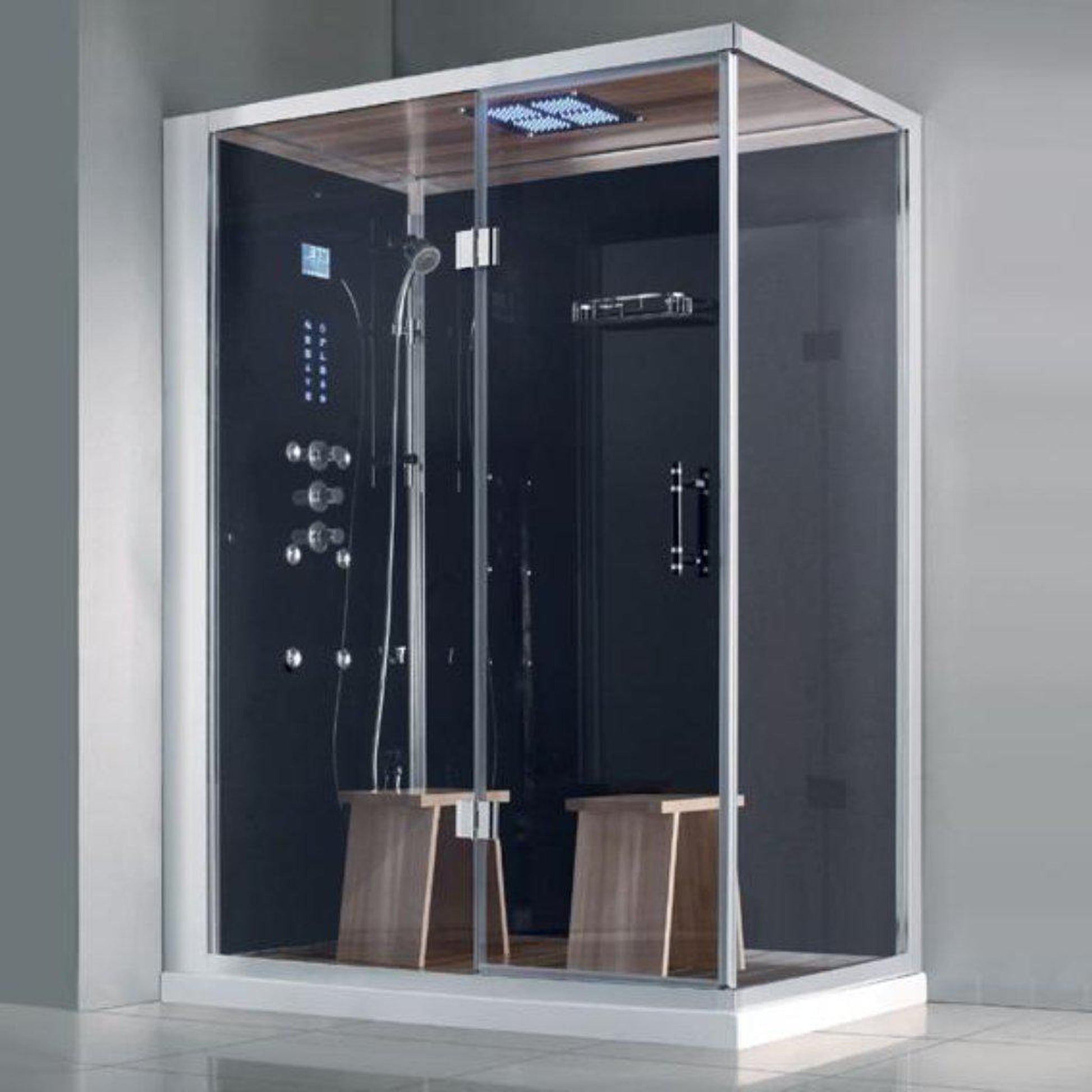 The Athena WS-141L steam shower features a high-output 4.5kW steam engine, 6 acupressure body jets, and two removable wooden stools. The WS-141L is one of our most popular luxury steam showers. Real oak wood ceiling and floor grids, combined with a heavy duty hinged glass door and polished aluminum trim add style and distinct luxury to any bathroom. Also available in a right side configuration.