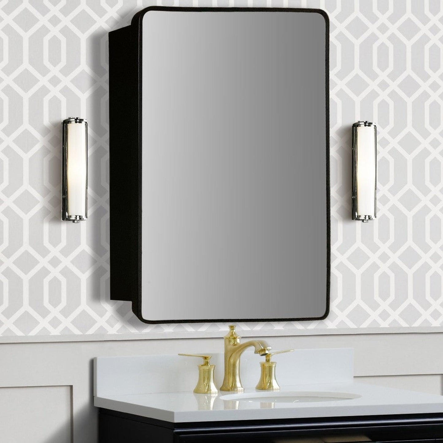 Bellaterra Home 29" x 18" Black Rectangle Wall-Mounted Steel Framed Mirror Medicine Cabinet