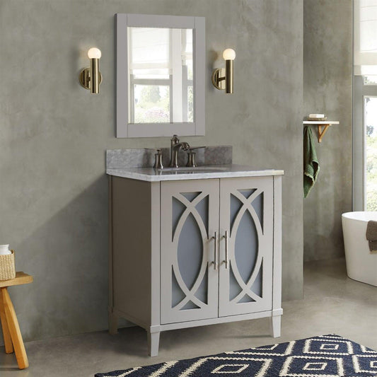 Bellaterra Home 30" 2-Door 1-Drawer Light Gray Freestanding Vanity Set With Ceramic Undermount Oval Sink and White Carrara Marble Top