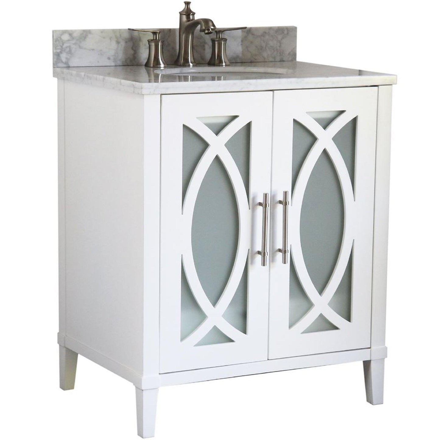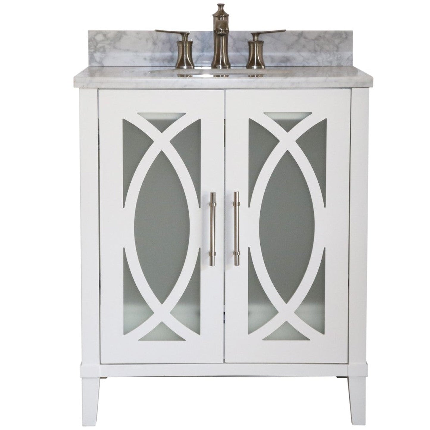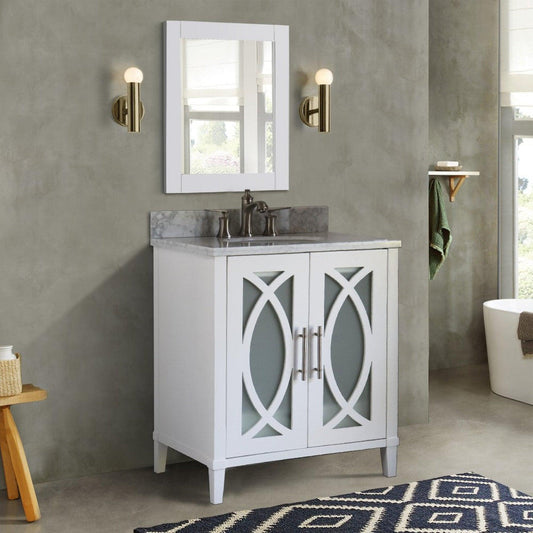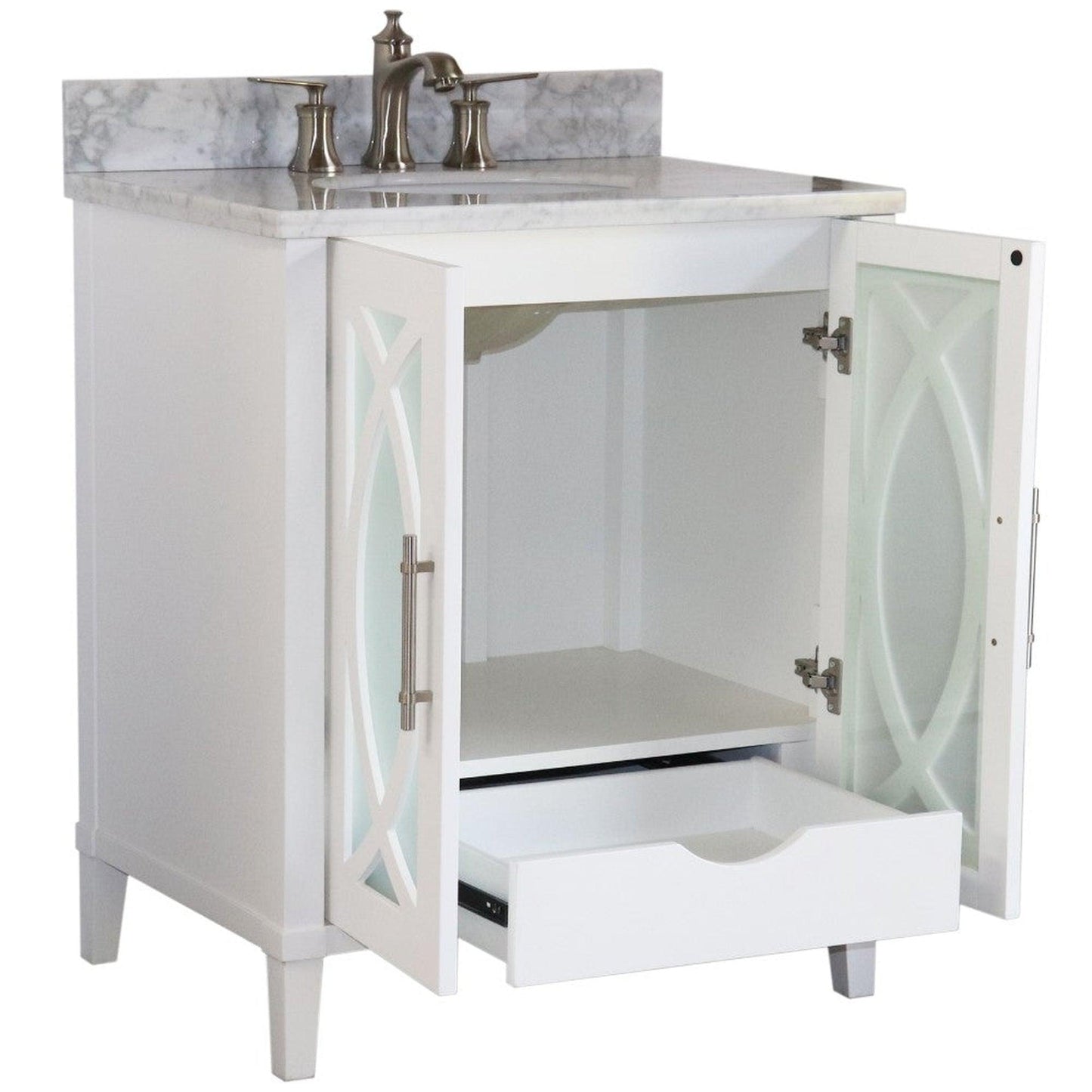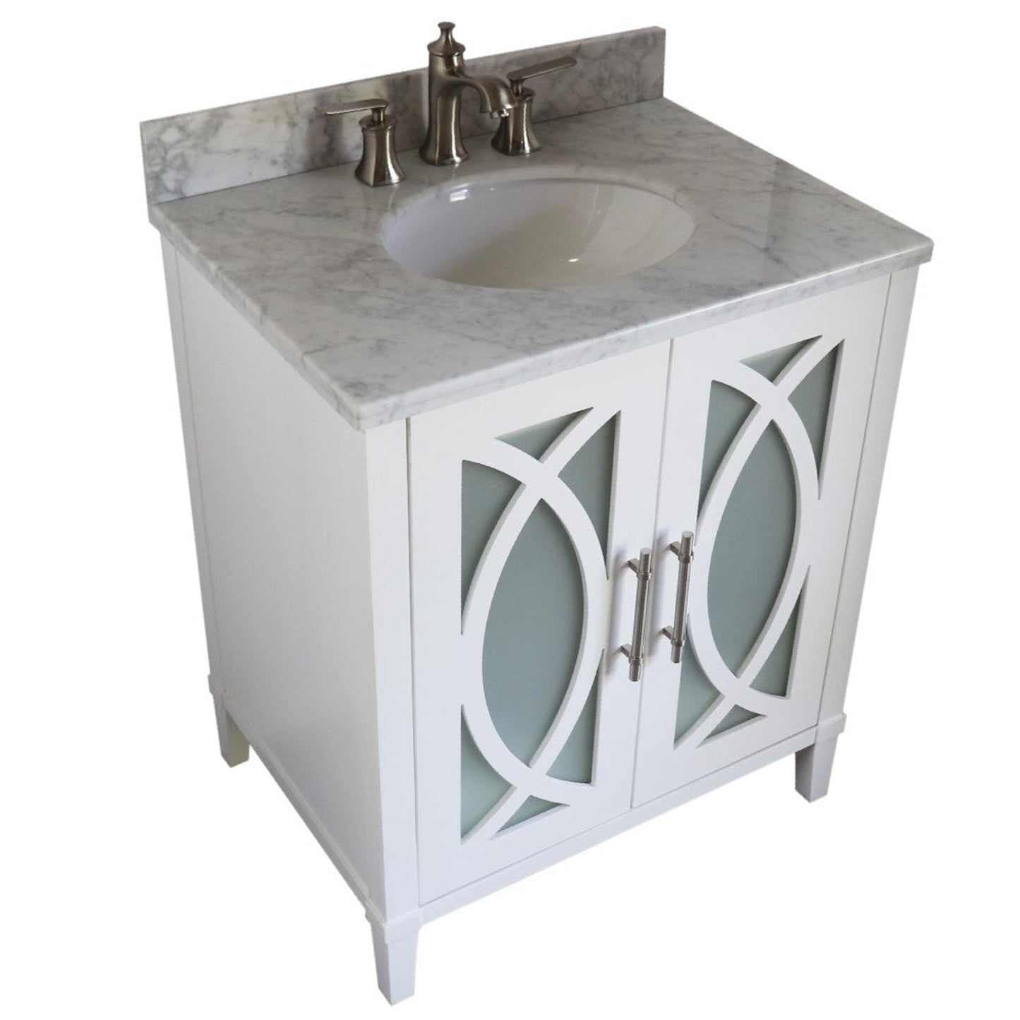 Bellaterra Home 30" 2-Door 1-Drawer White Freestanding Vanity Set With Ceramic Undermount Oval Sink and White Carrara Marble Top
