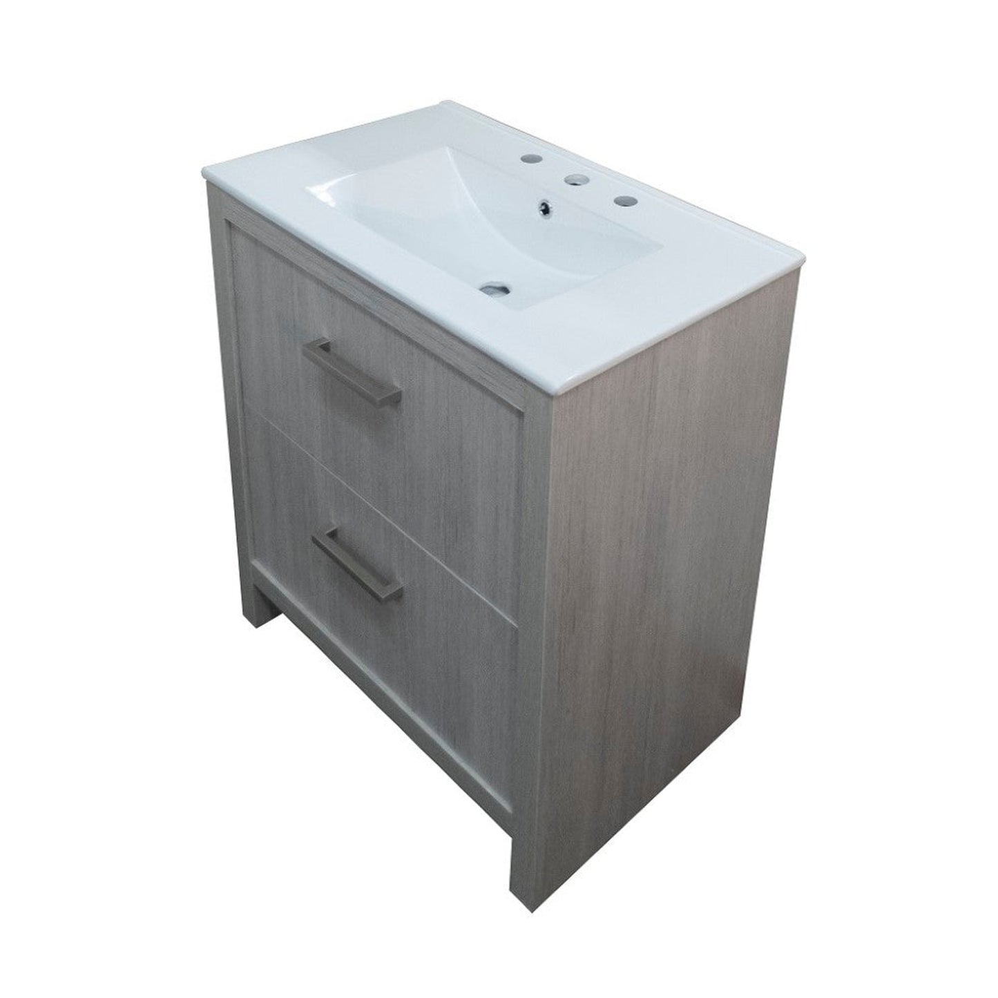 Bellaterra Home 30" 2-Drawer Gray Freestanding Vanity Set With Ceramic Integrated Sink and Ceramic Top