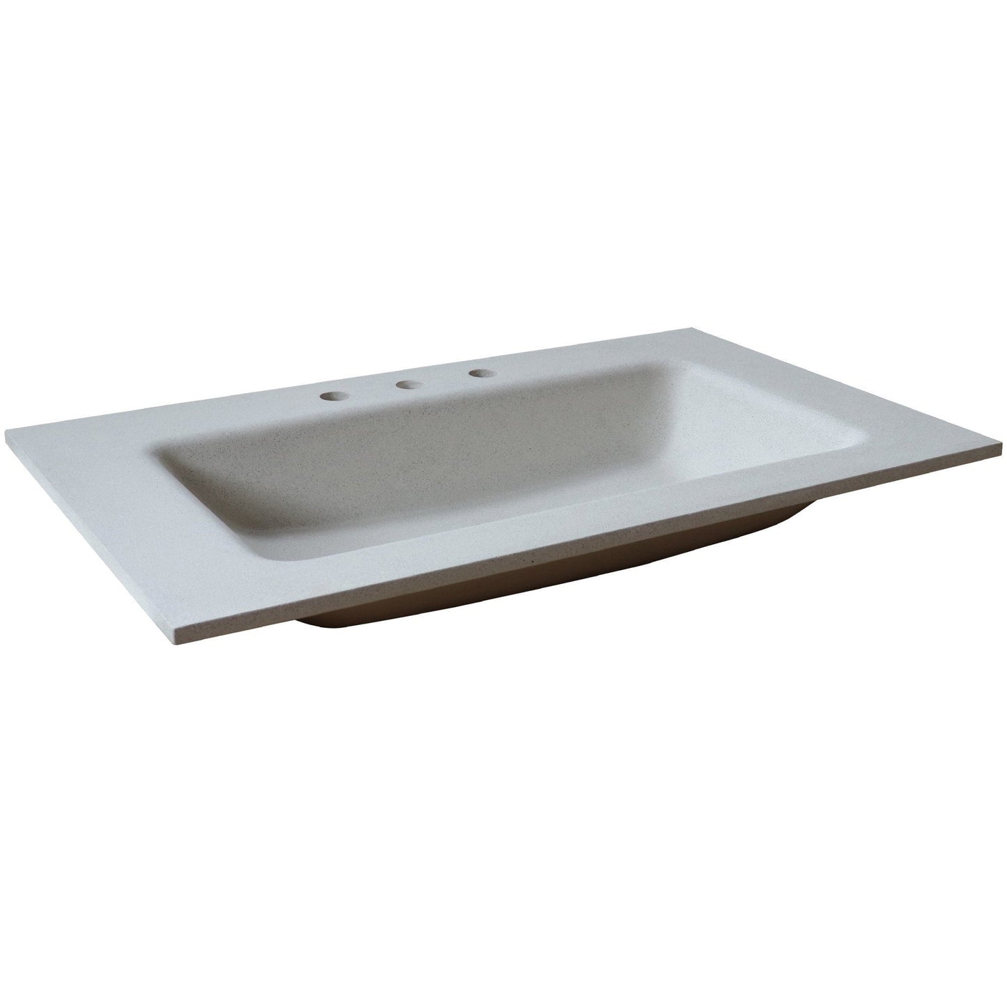 Bellaterra Home 37" x 22" Slate White Concrete Three Hole Vanity Top With Integrated Rectangular Sink