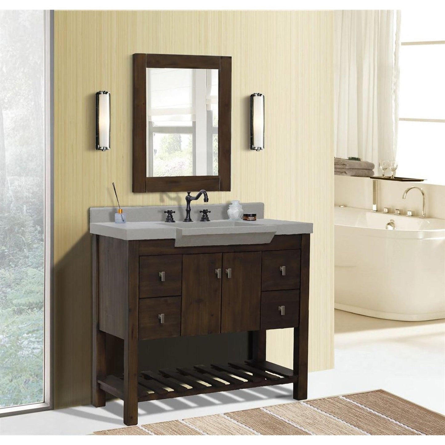 Bellaterra Home 39" 2-Door 4-Drawer Rustic Wood Freestanding Vanity Set With Concrete Integrated Rectangular Sink and Gray Concrete Top, and Brushed Nickel Hardware