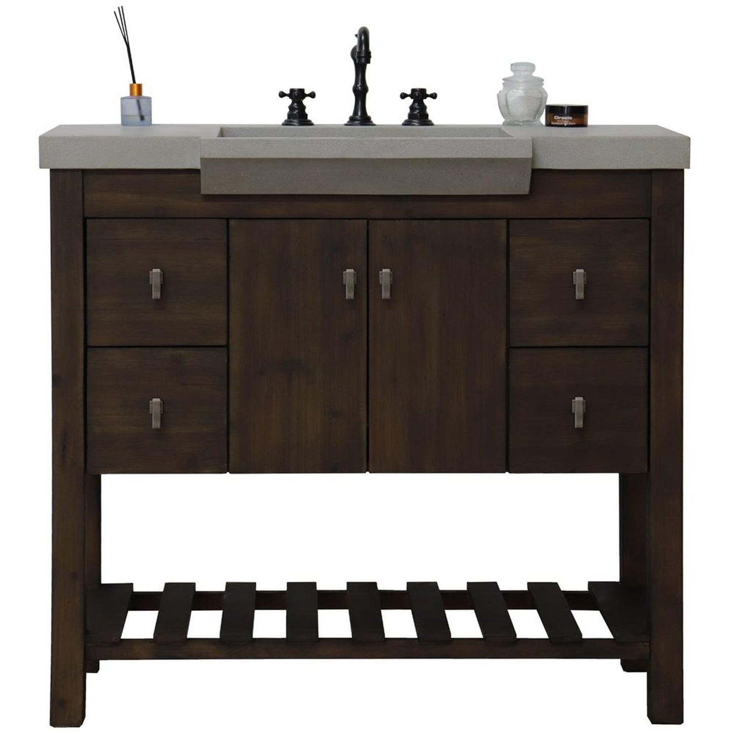 This single bathroom vanity brings clean lines and extra storage space to your main bathroom or guest bath. It's made from solid fir wood with its natural origins, the wood's organic knots and nicks are carefully preserved and handcrafted to create a deep rustic finish, thus accentuating its rustic beauty. The 39" wide concrete top surface gives you enough room for your daily use. The vanity top features a sleek ramp sink which brings functionality and modern design to any bathroom. There are two cabinet doors and four soft-close drawers. Plus, we have 3 choices of hardware colors and 3 top choices. This will easily match with the overall design of your bathroom.