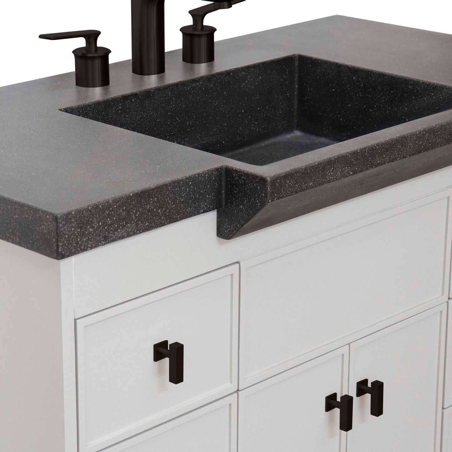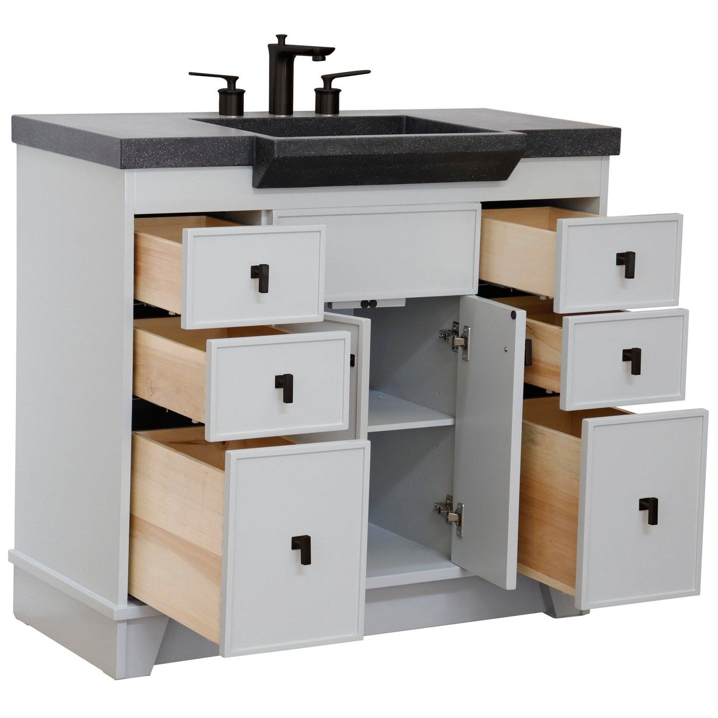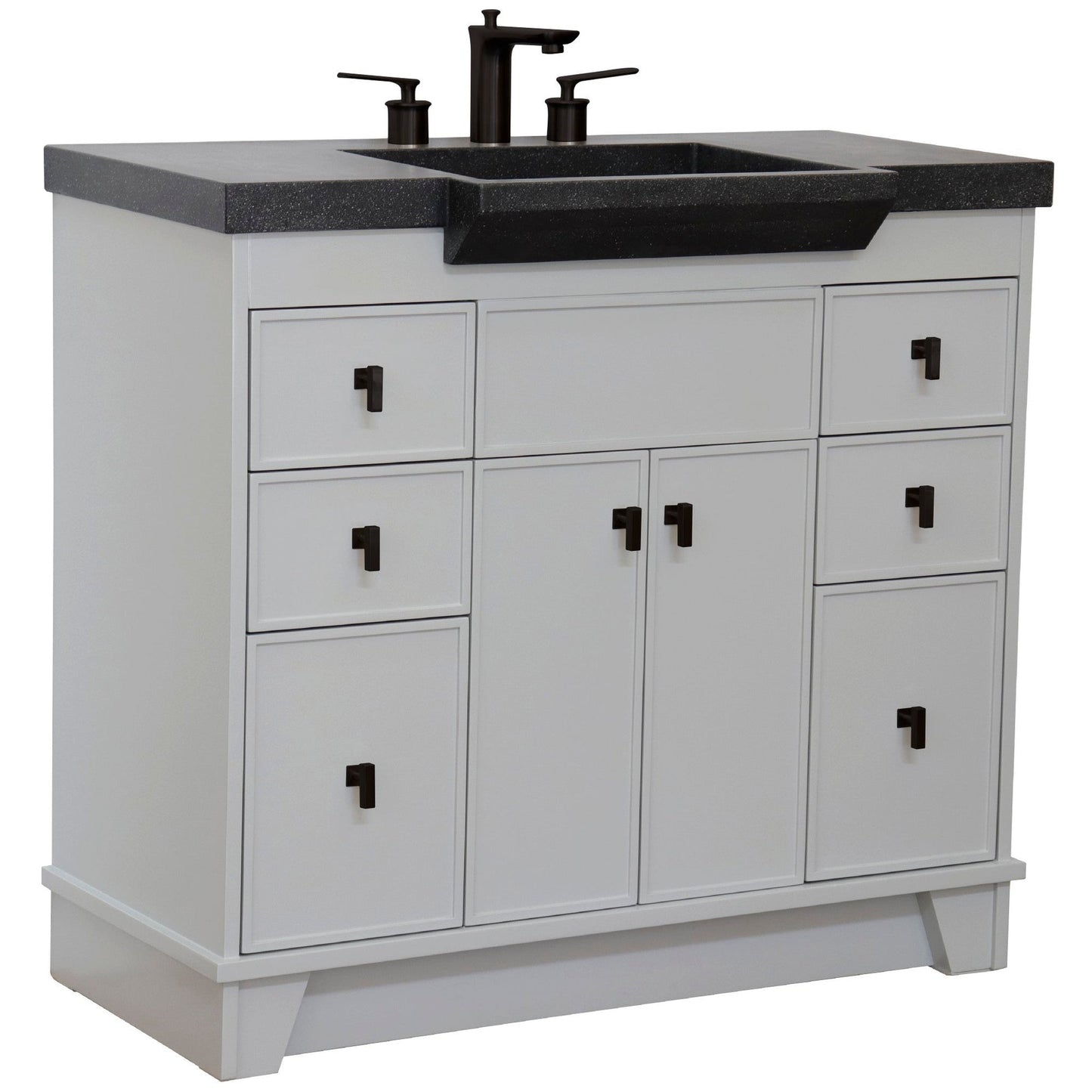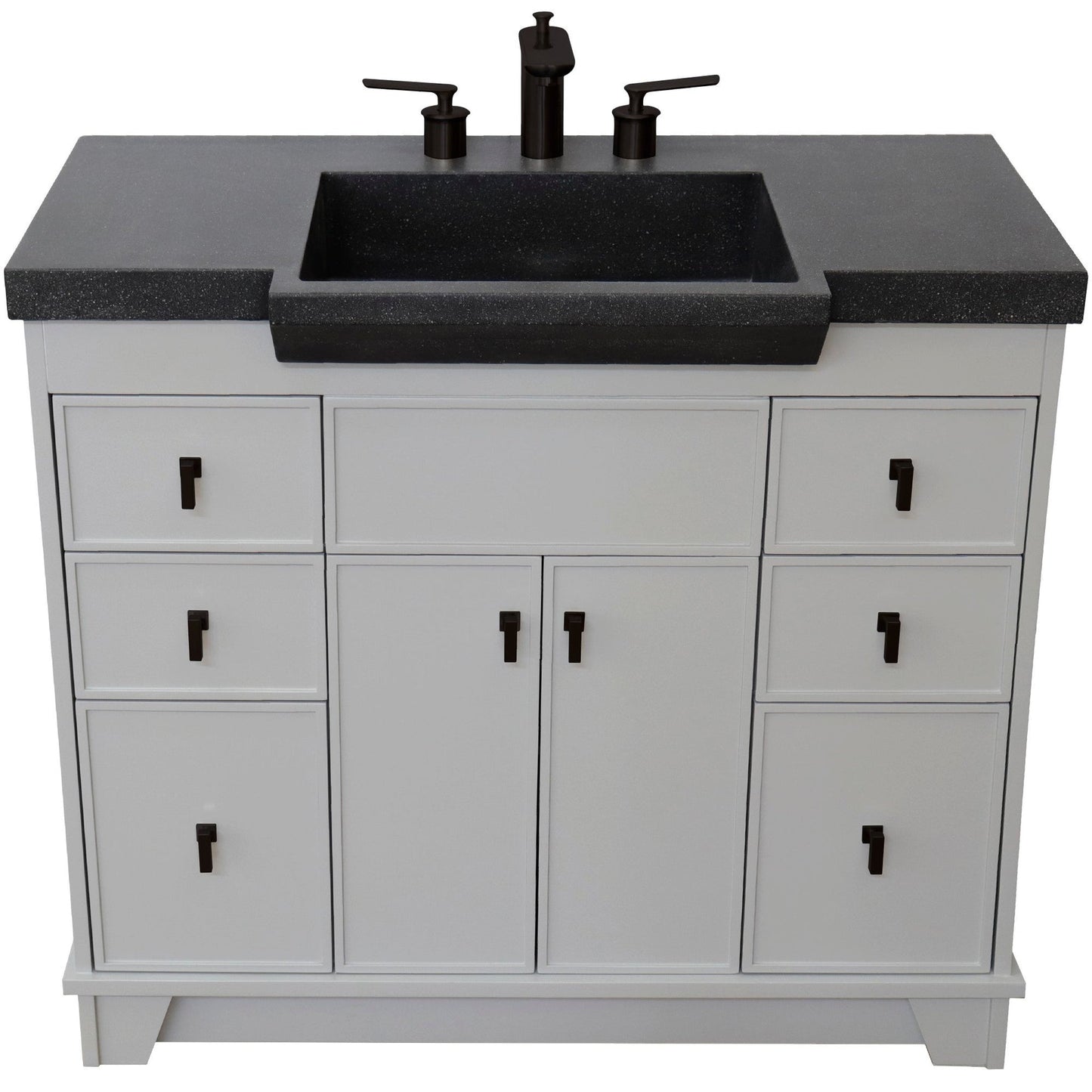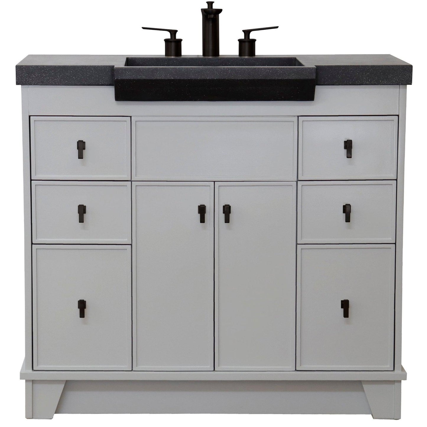 Bellaterra Home 39" 2-Door 6-Drawer Gray Freestanding Vanity Set With Concrete Integrated Sink and Black Concrete Top, and Black Hardware