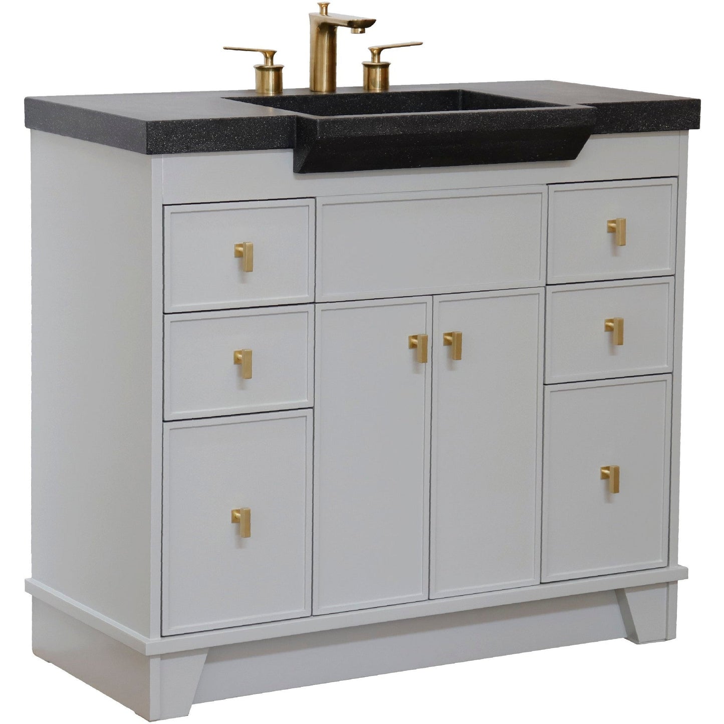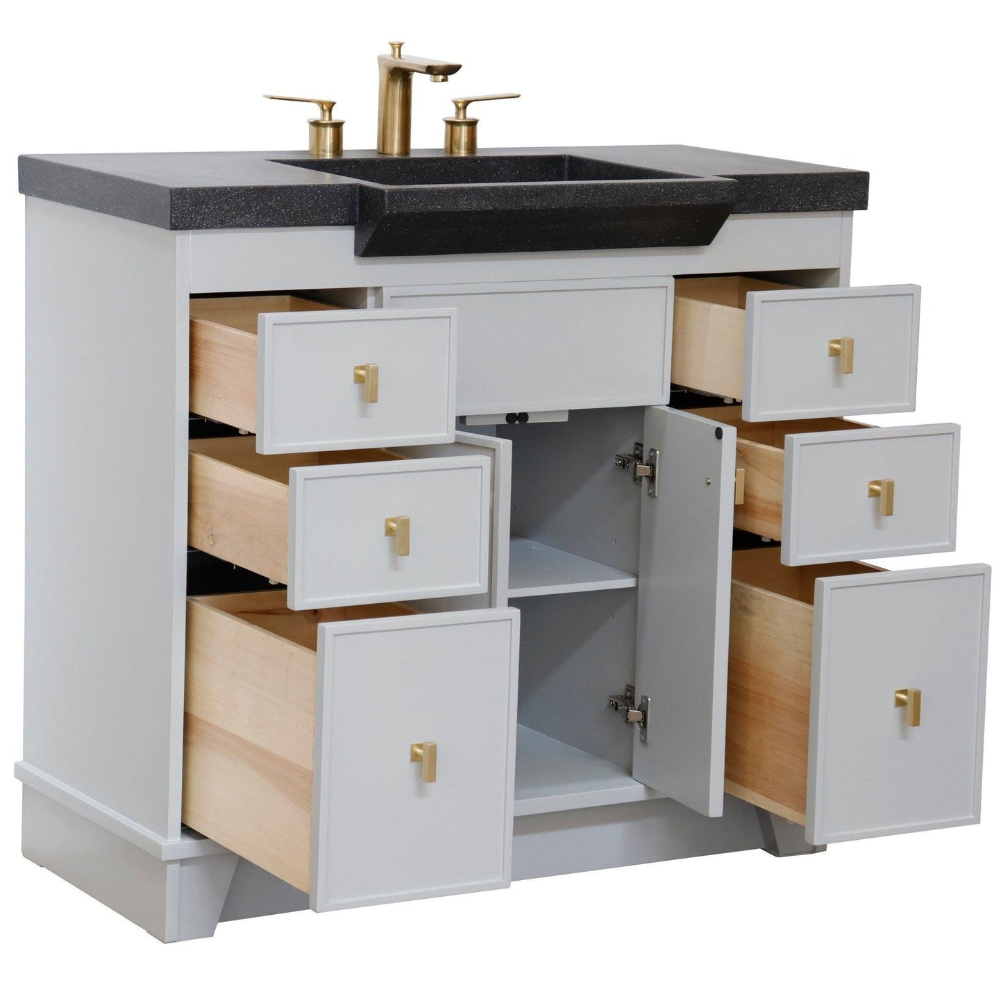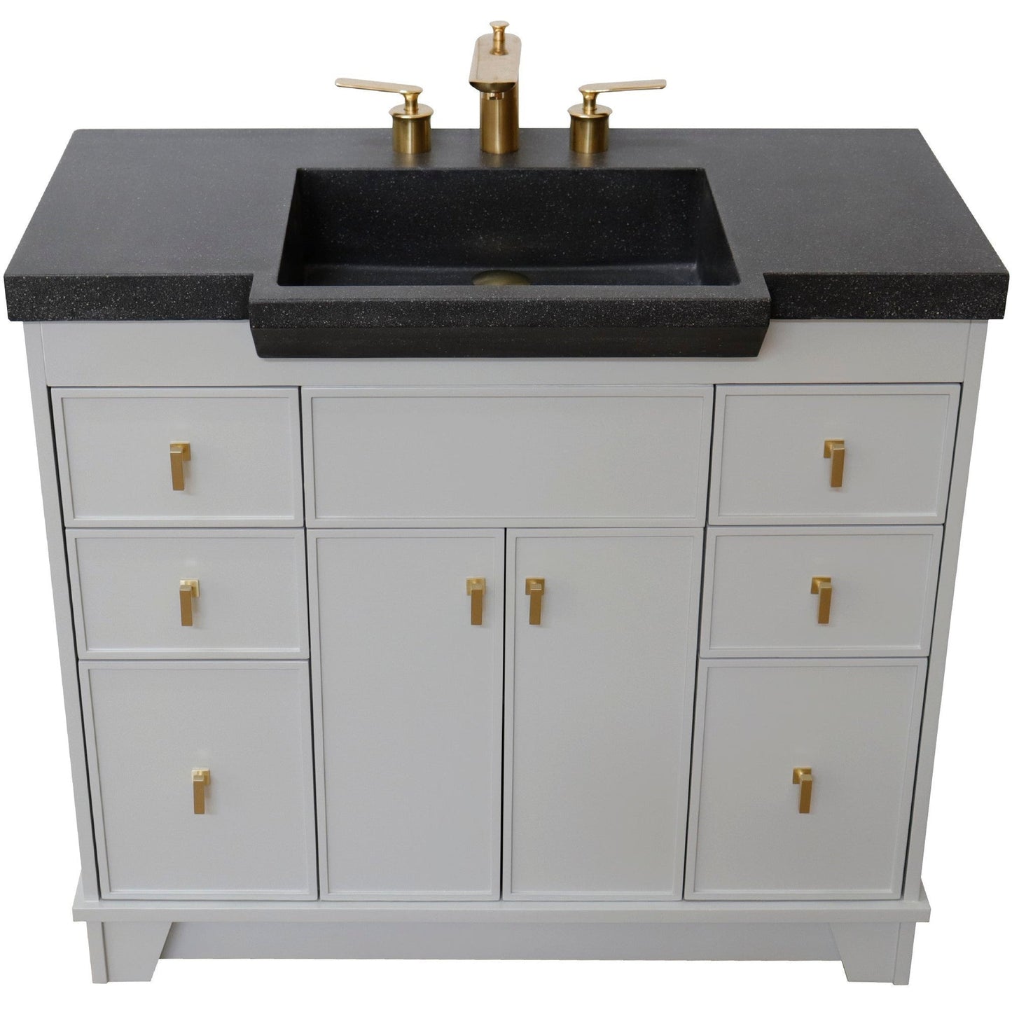 Bellaterra Home 39" 2-Door 6-Drawer Gray Freestanding Vanity Set With Concrete Integrated Sink and Black Concrete Top, and Brushed Gold Hardware