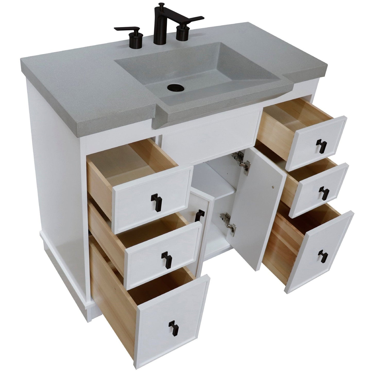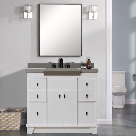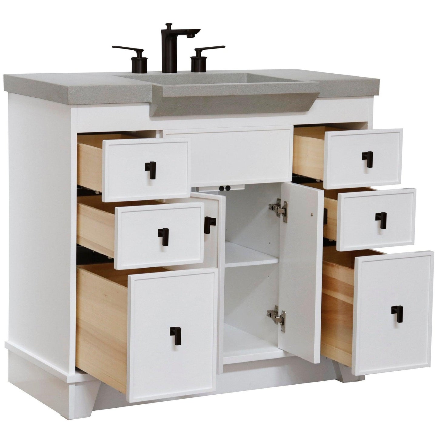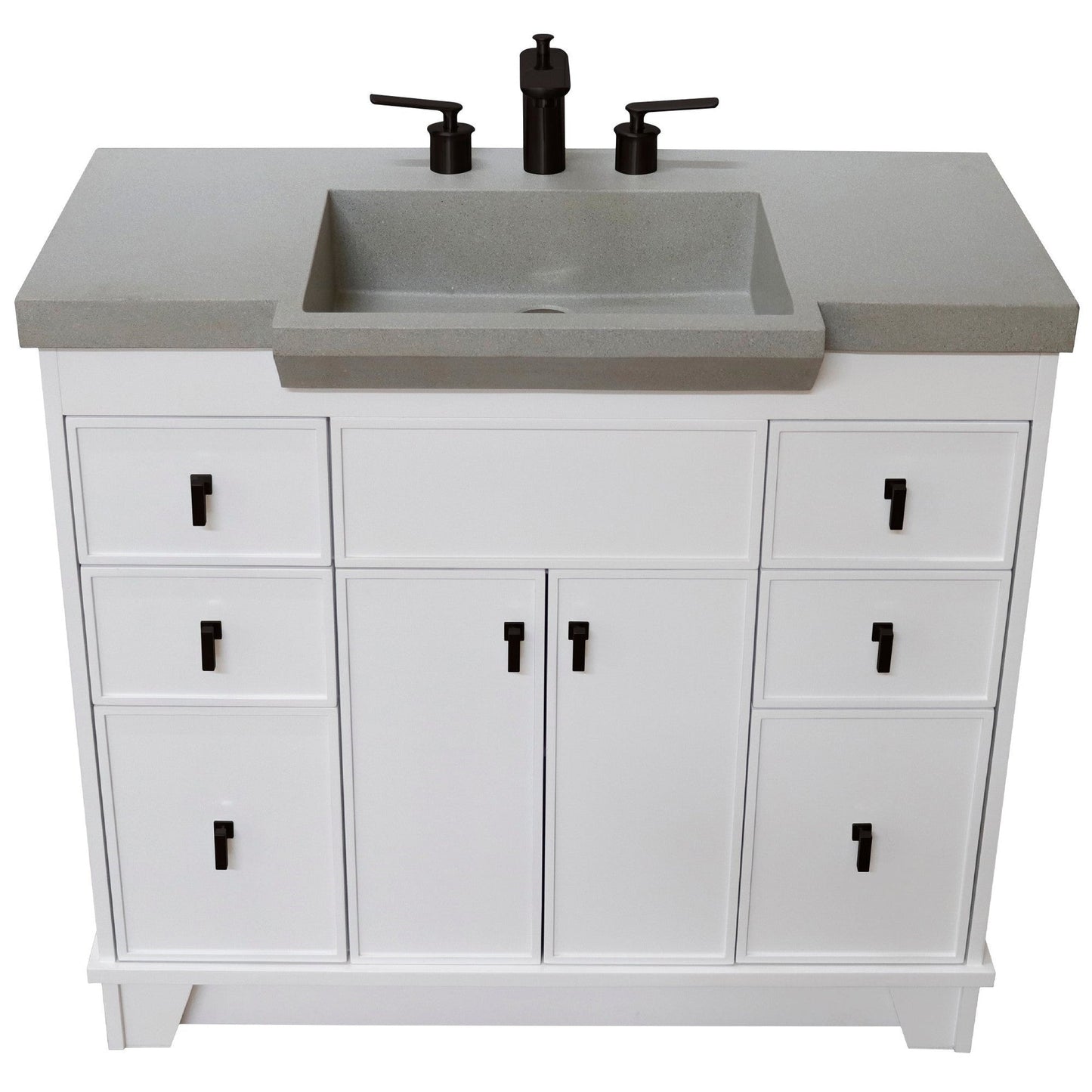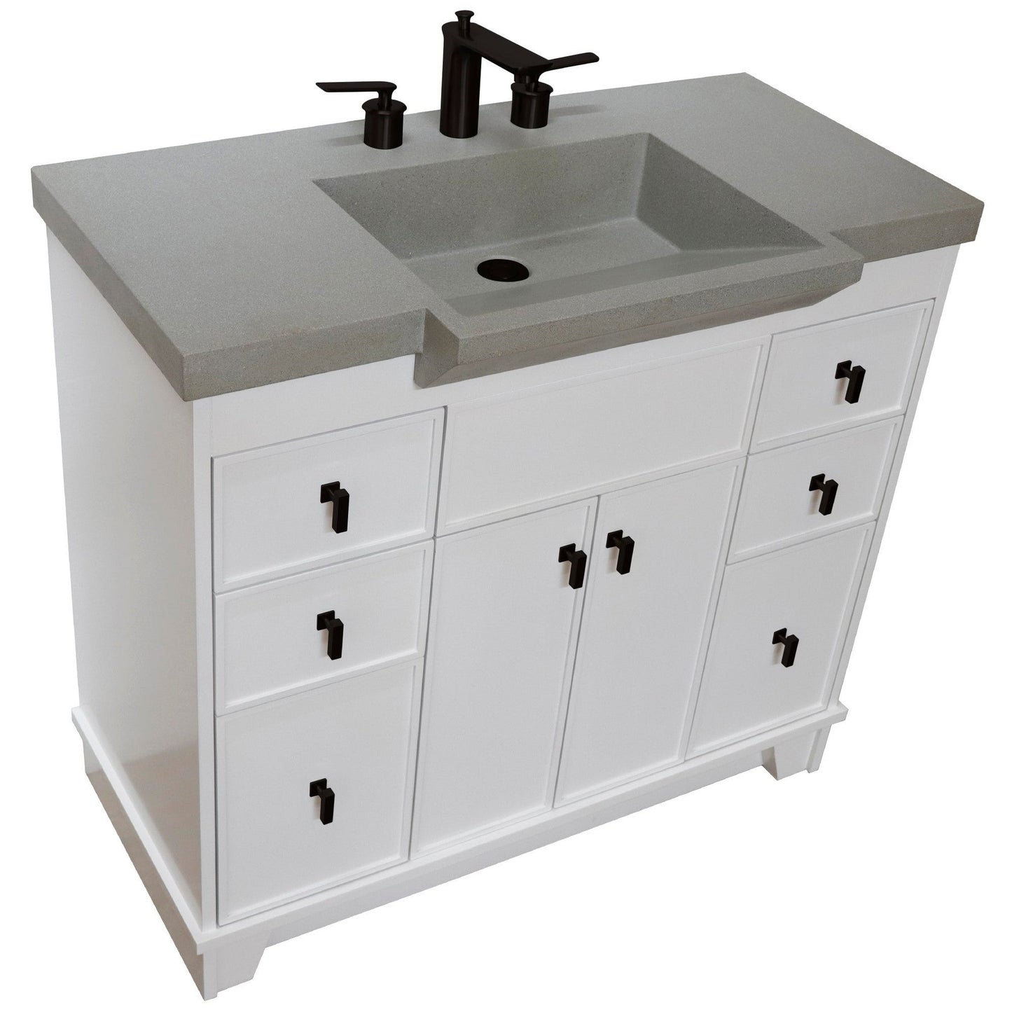 Bellaterra Home 39" 2-Door 6-Drawer White Freestanding Vanity Set With Concrete Integrated Sink and Gray Concrete Top, and Black Hardware