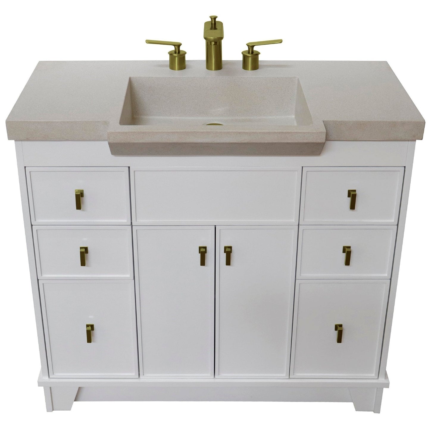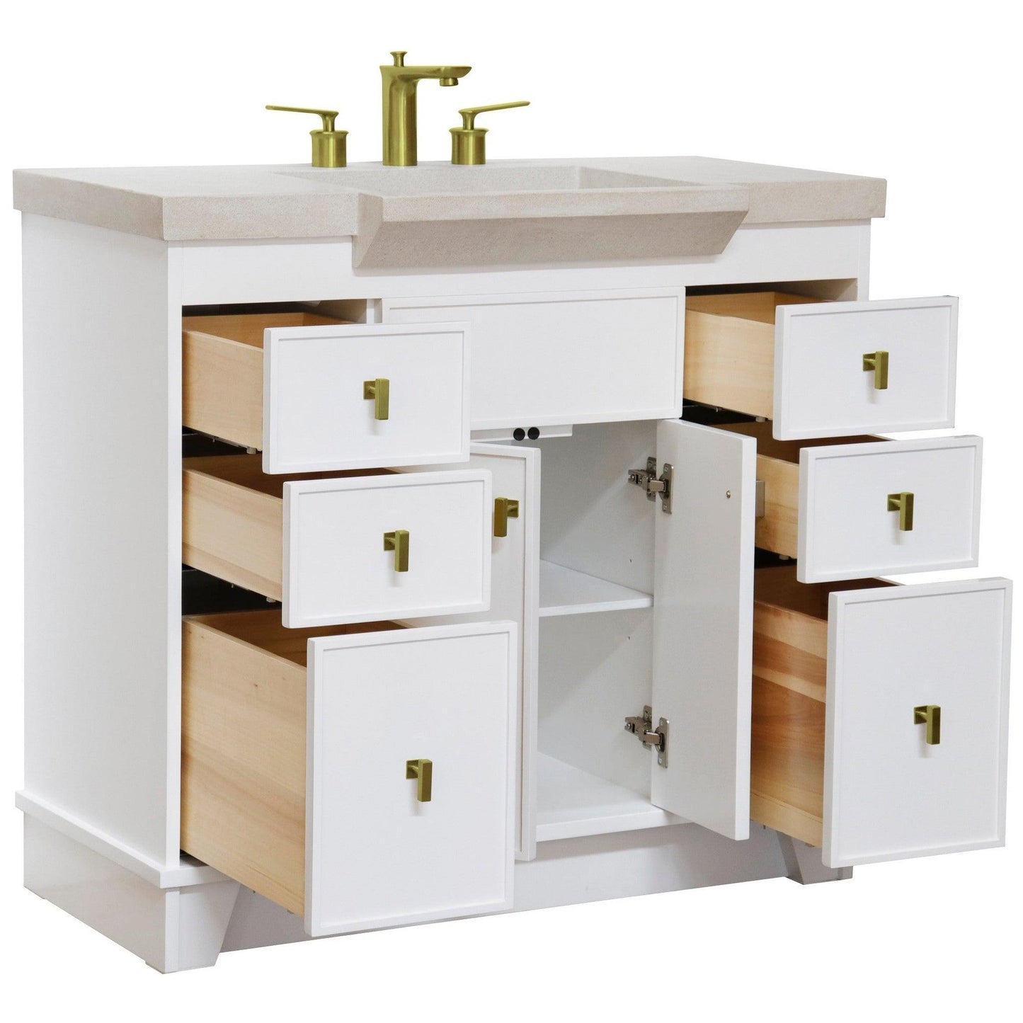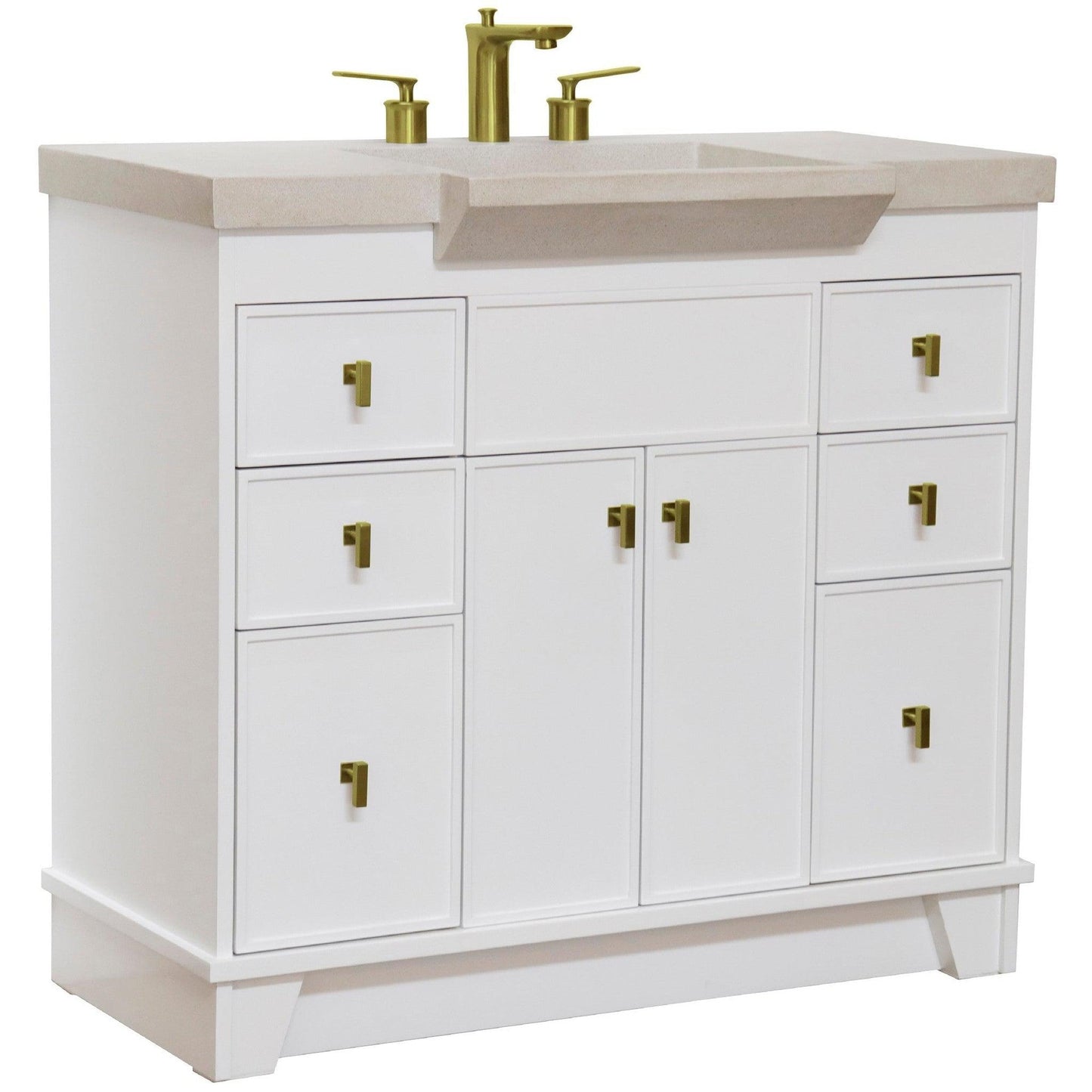 Bellaterra Home 39" 2-Door 6-Drawer White Freestanding Vanity Set With Concrete Integrated Sink and White Sand Concrete Top, and Brushed Gold Hardware