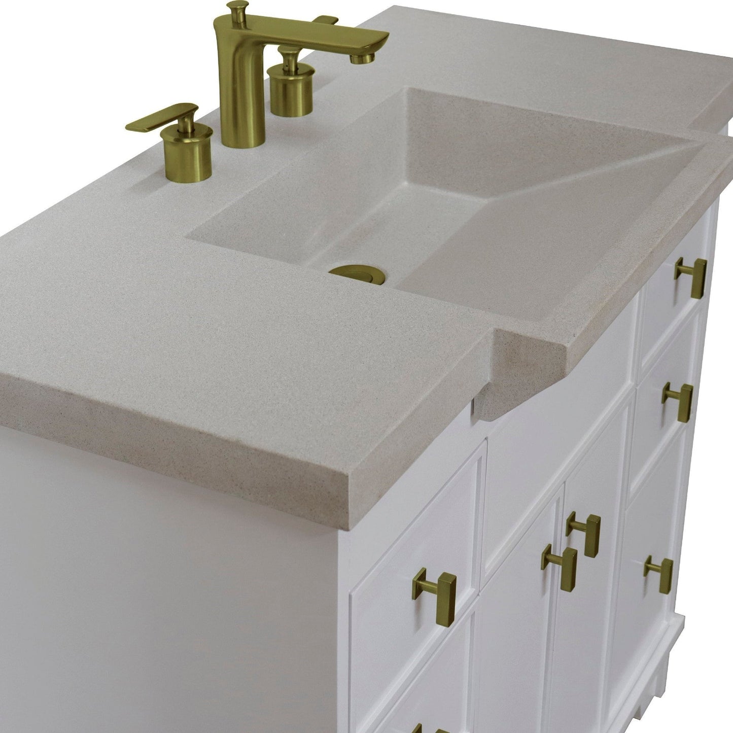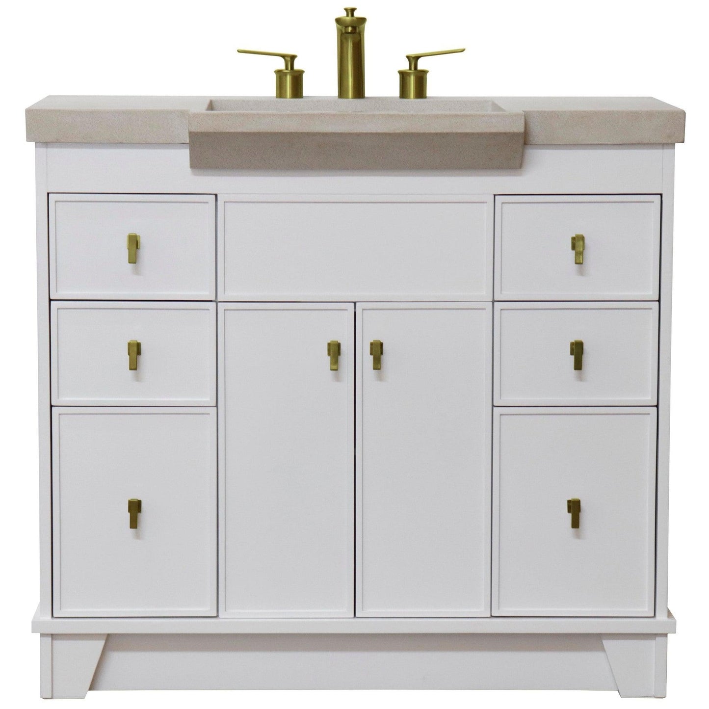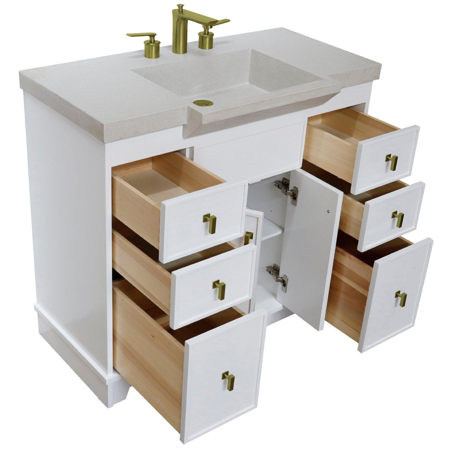 Bellaterra Home 39" 2-Door 6-Drawer White Freestanding Vanity Set With Concrete Integrated Sink and White Sand Concrete Top, and Brushed Gold Hardware