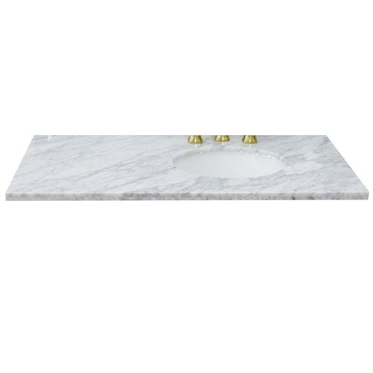 Bellaterra Home 43" x 22" White Carrara Marble Three Hole Vanity Vanity Top With Right Offset Undermount Oval Sink and Overflow