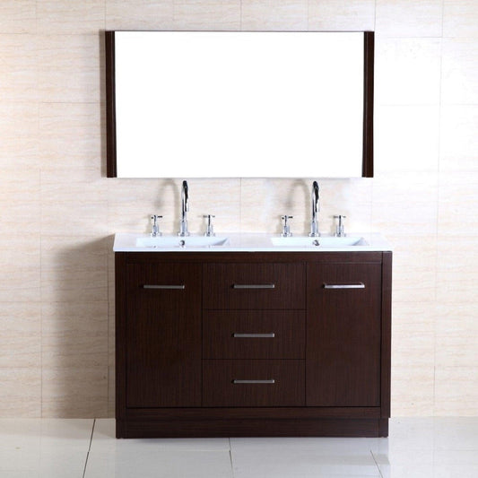 Bellaterra Home 48" 2-Door 3-Drawer Wenge Freestanding Vanity Set With Ceramic Double Integrated Sink and Ceramic Top