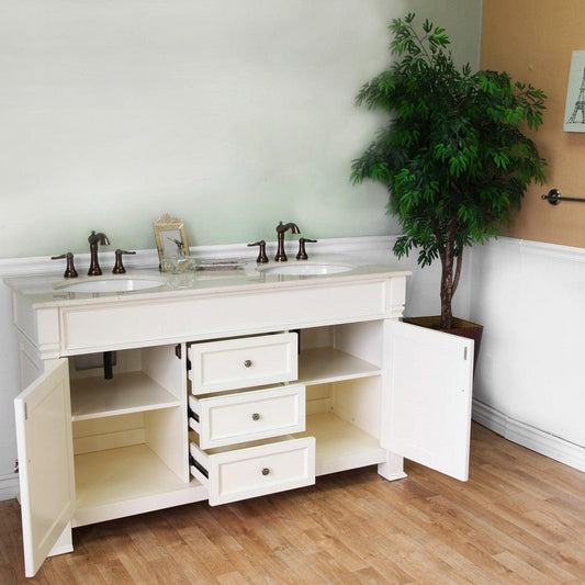 Bellaterra Home 60" 2-Door 3-Drawer Cream White Freestanding Vanity Set With White Ceramic Double Undermount Sink and Cream Marble Top