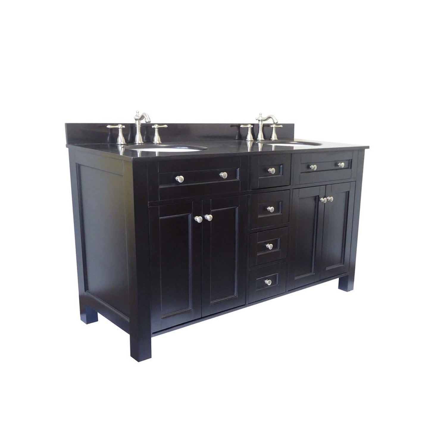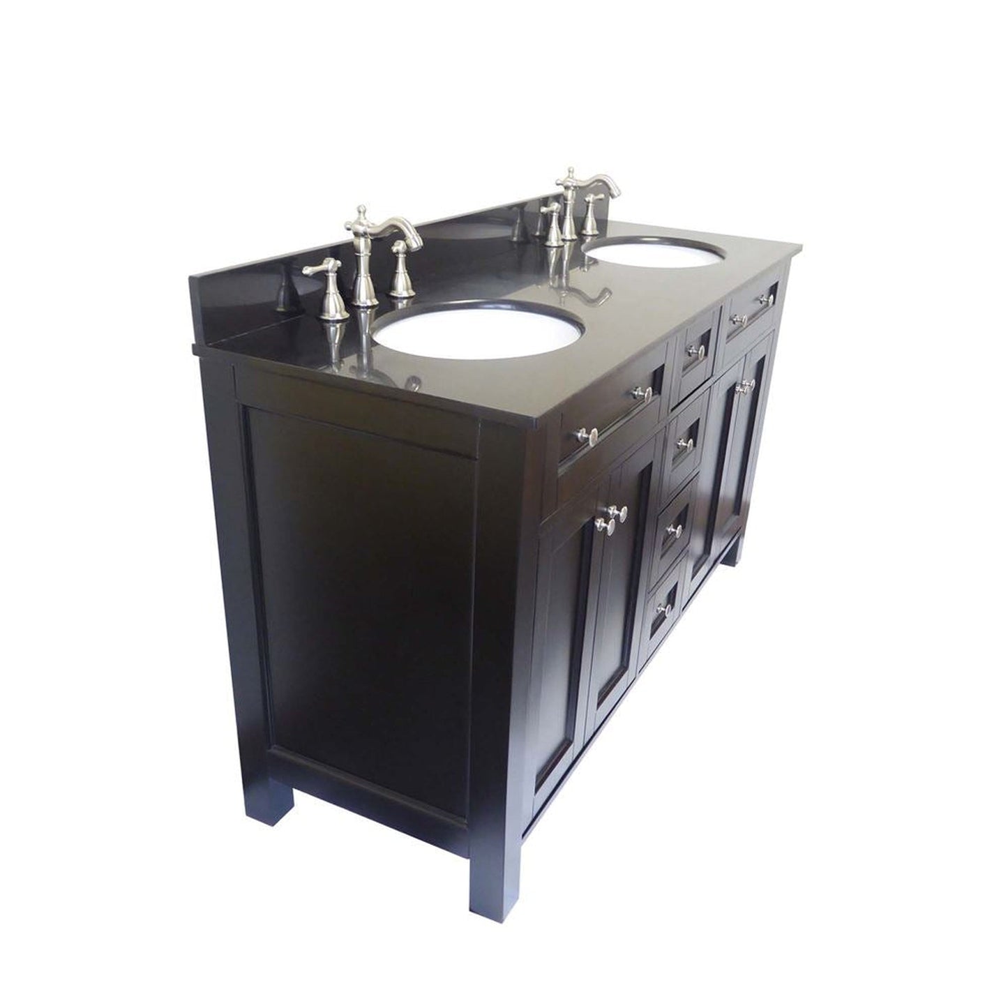 Bellaterra Home 62" 4-Door 4-Drawer Black Freestanding Vanity Set With Ceramic Double Undermount Oval Sink and Black Galaxy Top