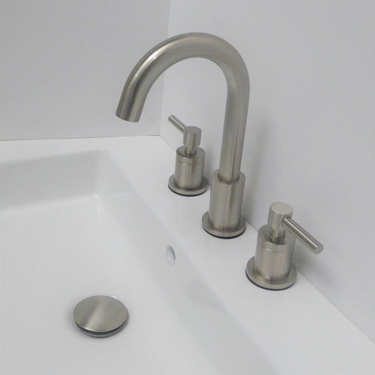Bellaterra Home's newest faucets are double handled, which allows precise control over the flow pressure and temperature. This style is available in polished chrome, brushed nickel, and new black (matte black) finishes. The curved spout and edges as well as the widespread mount features give the faucet a clean modern look with an elegant touch to it. It also meets EPA WaterSense's criteria to conserve water without sacrificing its performance, allowing you to save on those monthly expensive water bills. On top of that, with a solid brass construction, ceramic valve, and pre-installed stainless steel netted soft hose ensures rust and spot resistant which provides long lasting functionality and an easy to clean process. Last but not least, all the mounting tools come with the product, so it is ready to be part of your home right out the box.