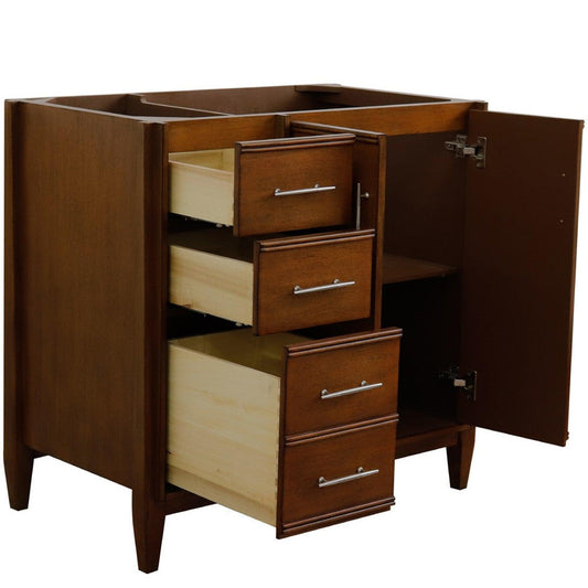 Bellaterra Home MCM 36" 2-Door 3-Drawer Walnut Freestanding Vanity Base With Right Door