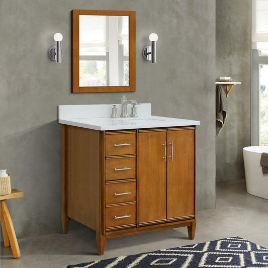 Bellaterra Home MCM 37" 2-Door 3-Drawer Walnut Freestanding Vanity Set With Ceramic Right Undermount Rectangular Sink and White Quartz Top, and Right Door Cabinet