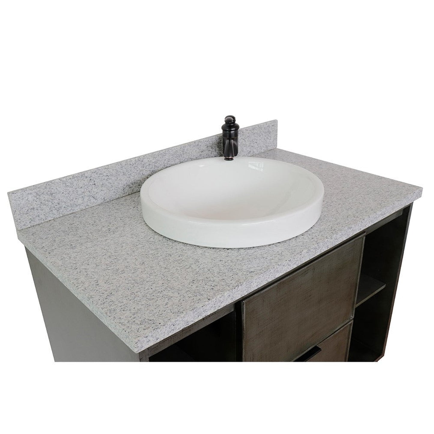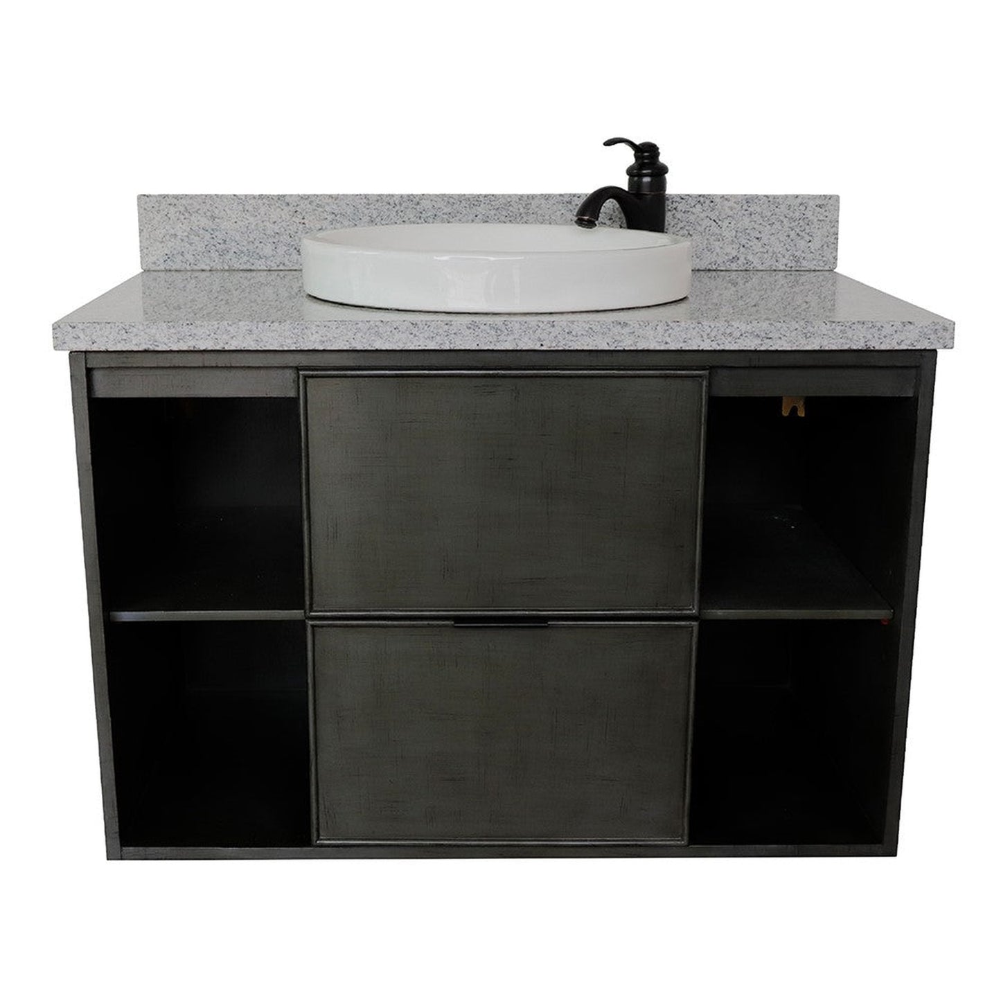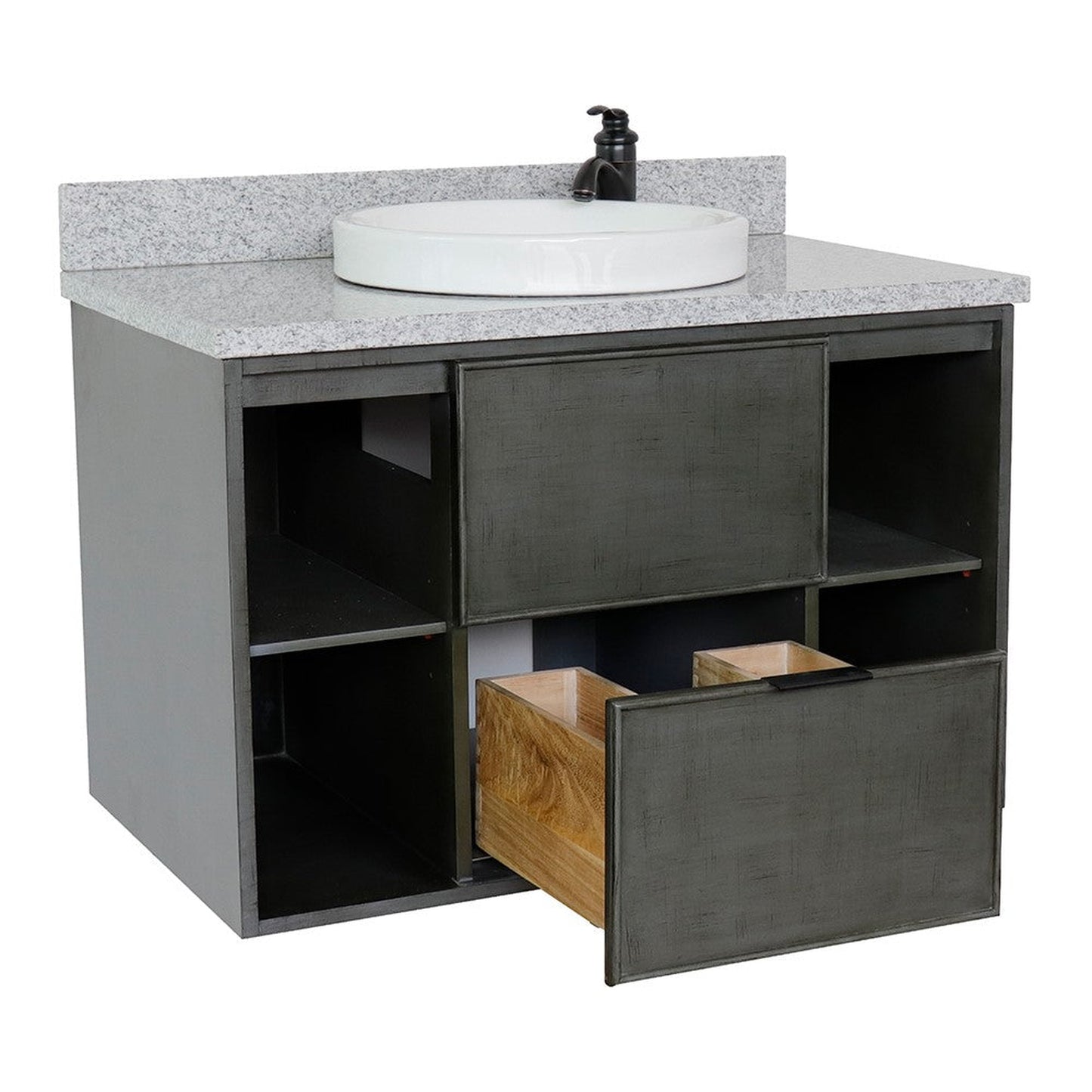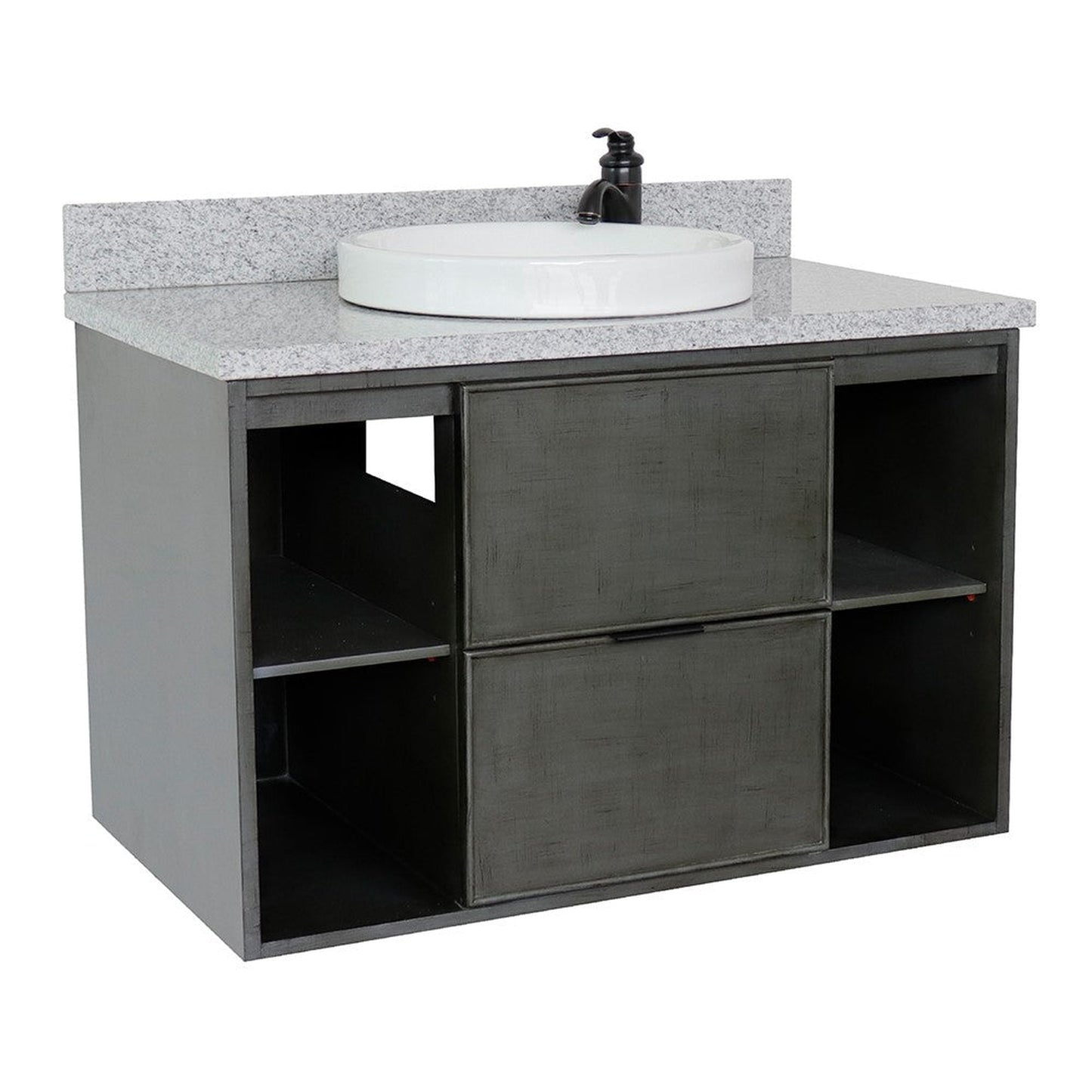 Bellaterra Home Paris Exposed 37" 1-Drawer Linen Gray Wall-Mount Vanity Set With Ceramic Vessel Sink and Gray Granite Top