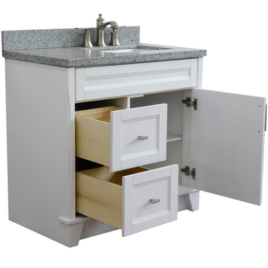 Bellaterra Home Terni 37" 1-Door 2-Drawer White Freestanding Vanity Set With Ceramic Right Offset Undermount Rectangular Sink and Gray Granite Top, and Right Door Base