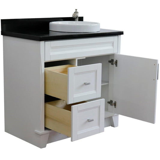 Bellaterra Home Terni 37" 1-Door 2-Drawer White Freestanding Vanity Set With Ceramic Right Offset Vessel Sink and Black Galaxy Granite Top, and Right Door Base