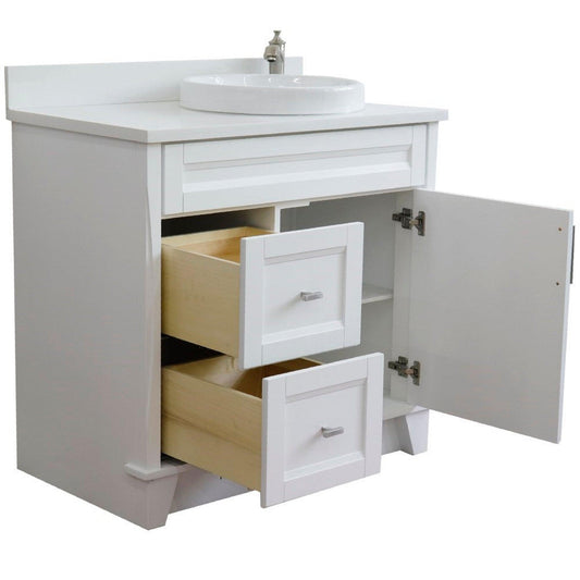 Bellaterra Home Terni 37" 1-Door 2-Drawer White Freestanding Vanity Set With Ceramic Right Offset Vessel Sink and White Quartz Top, and Right Door Base
