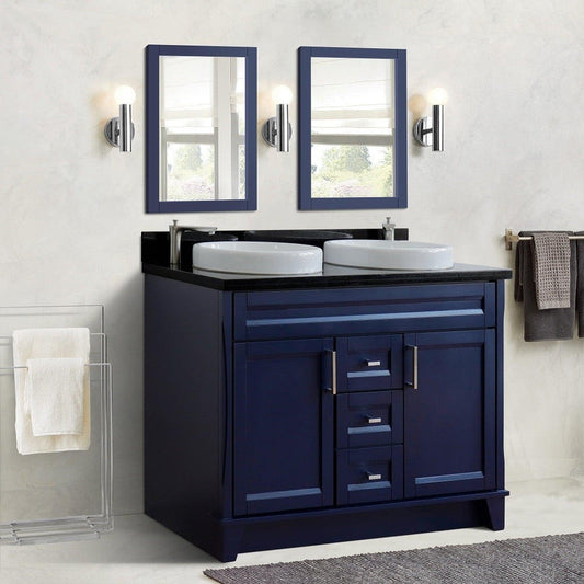 Bellaterra Home Terni 49" 2-Door 2-Drawer Blue Freestanding Vanity Set With Ceramic Double Vessel Sink and Black Galaxy Granite Top