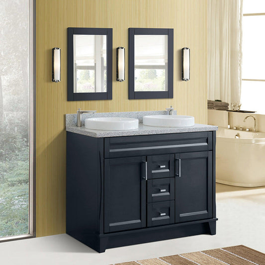 Bellaterra Home Terni 49" 2-Door 2-Drawer Dark Gray Freestanding Vanity Set With Ceramic Double Vessel Sink and Gray Granite Top
