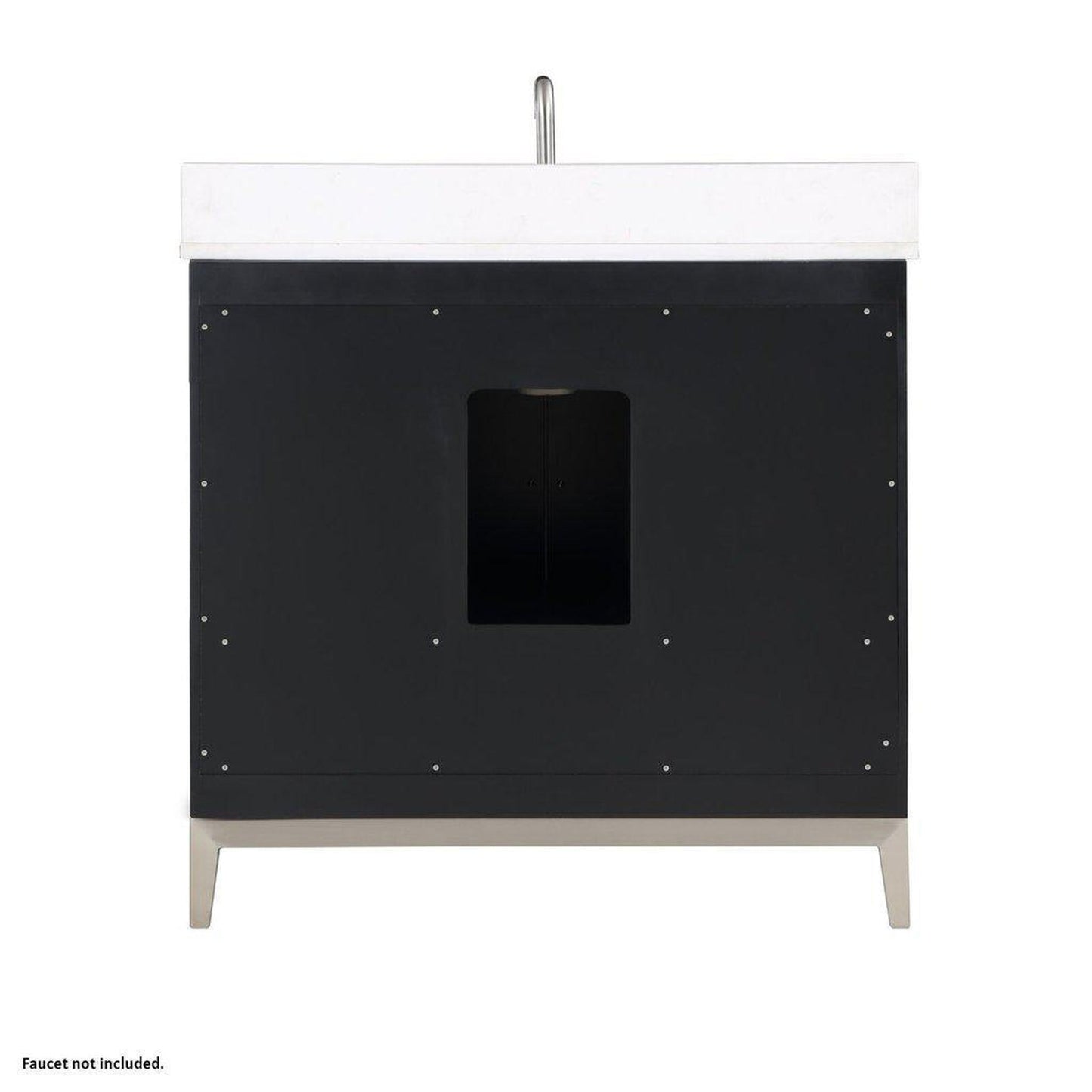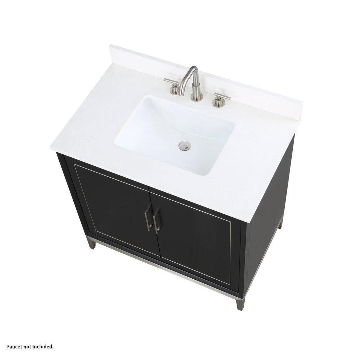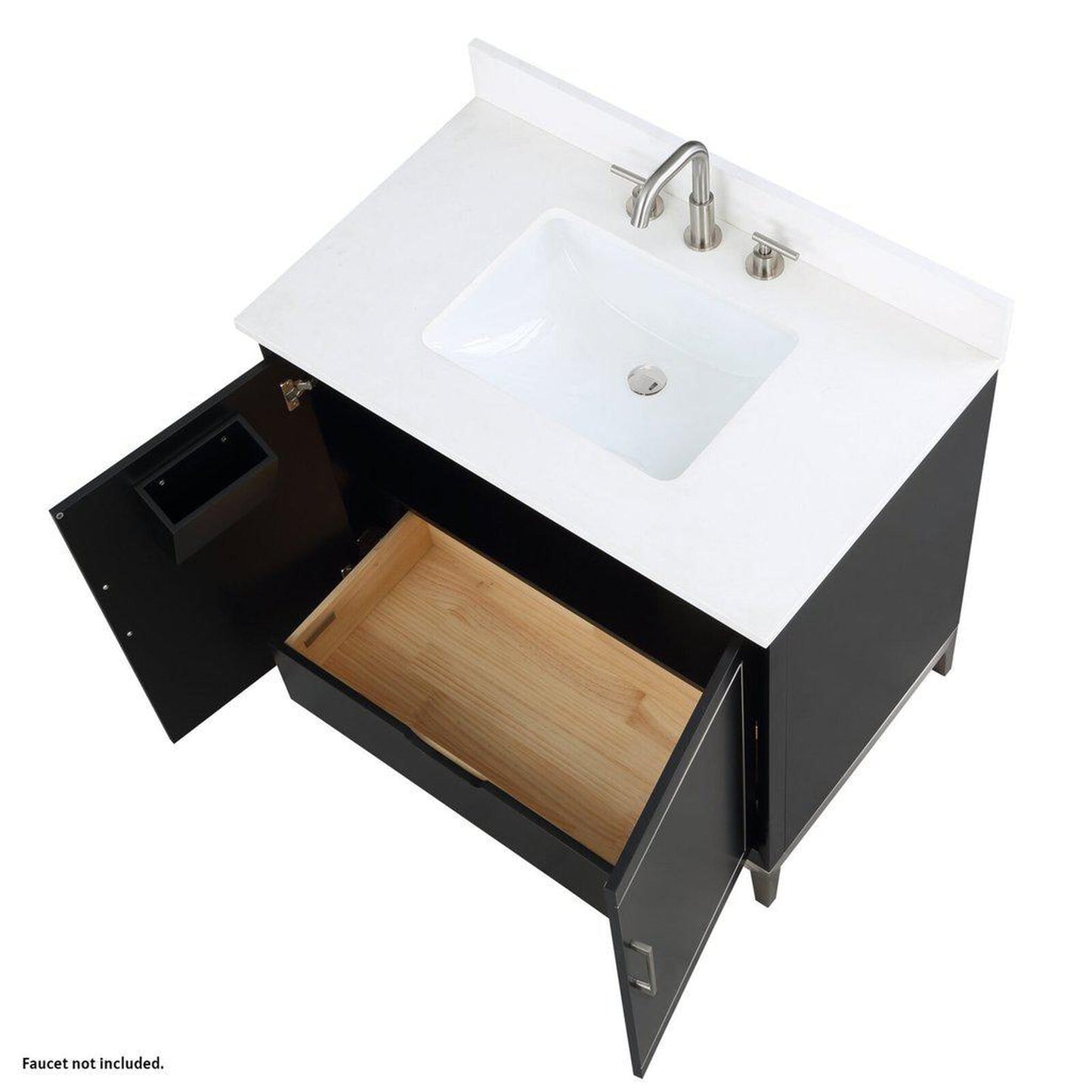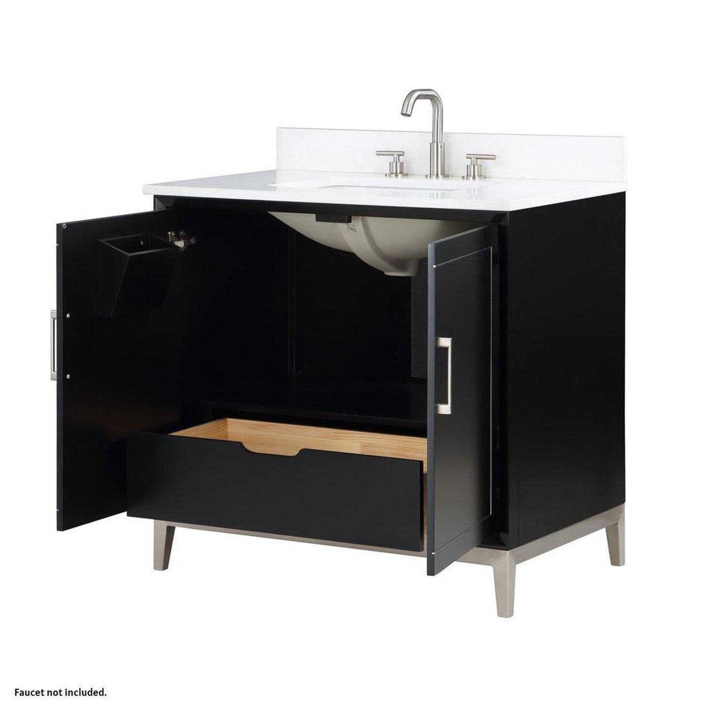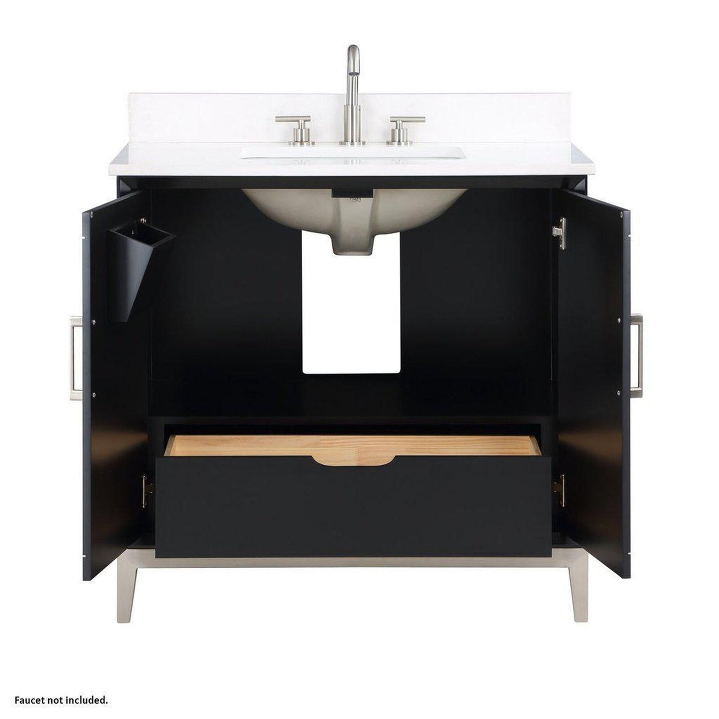 Bemma Design Gracie 36" Midnight Black Solid Wood Freestanding Bathroom Vanity With Single 3-Hole White Quartz Vanity Top, Rectangle Undermount Sink, Backsplash and Brushed Nickel Trim