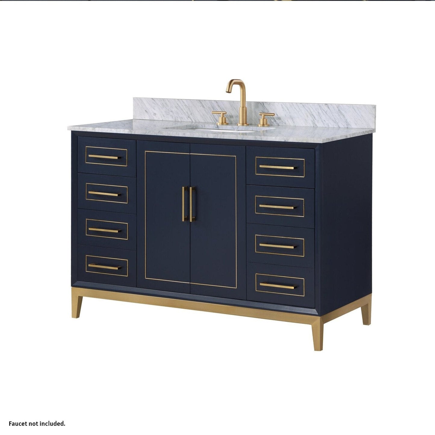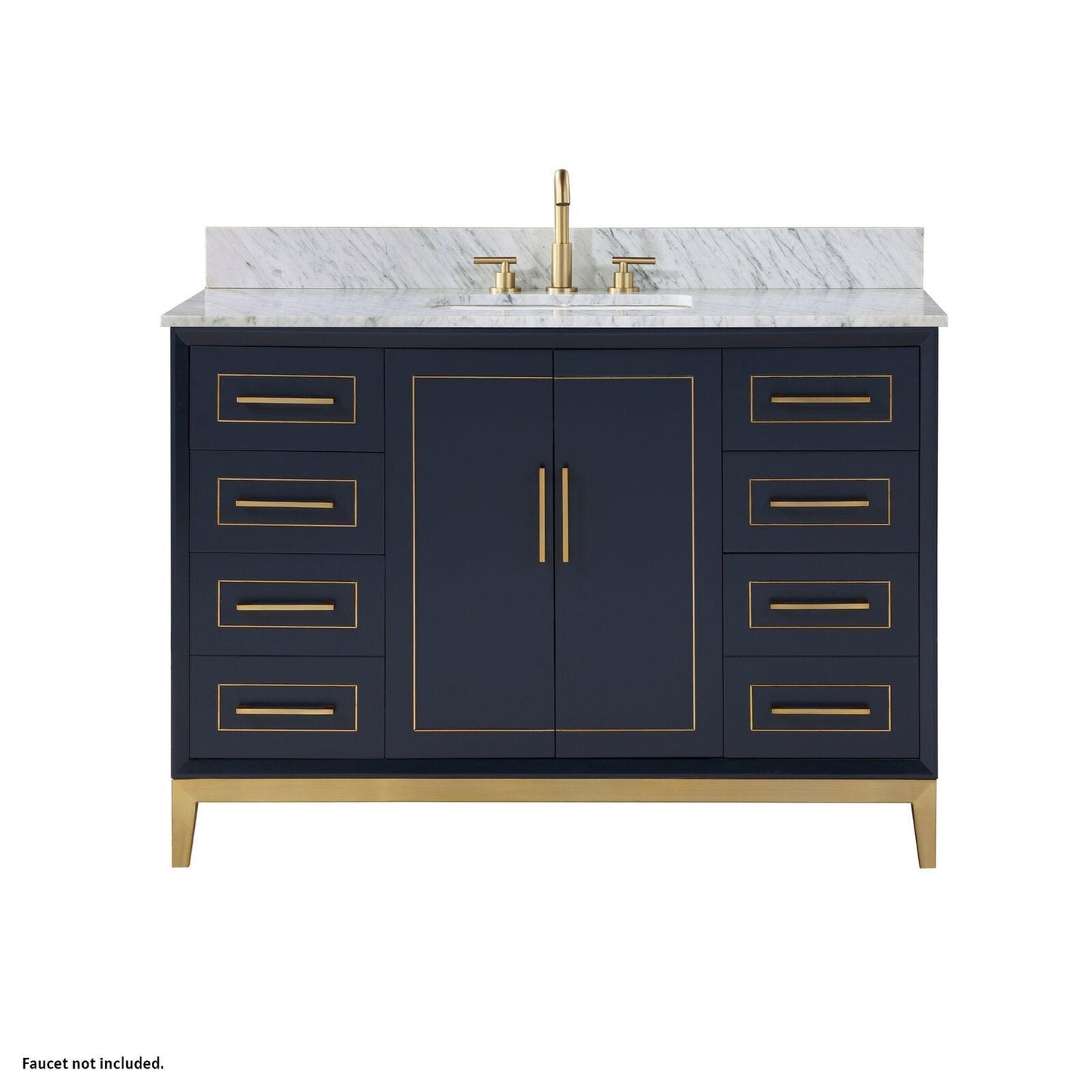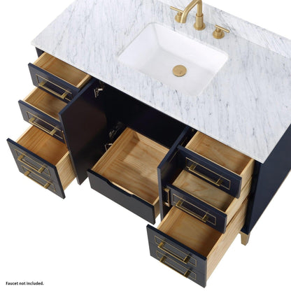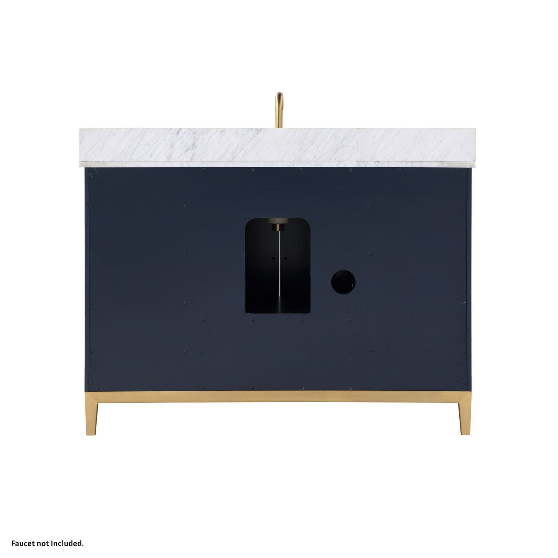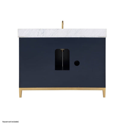 Bemma Design Gracie 48" Pacific Blue Solid Wood Freestanding Bathroom Vanity With Single 3-Hole Italian Carra Marble Vanity Top, Rectangle Undermount Sink, Backsplash and Satin Brass Trim