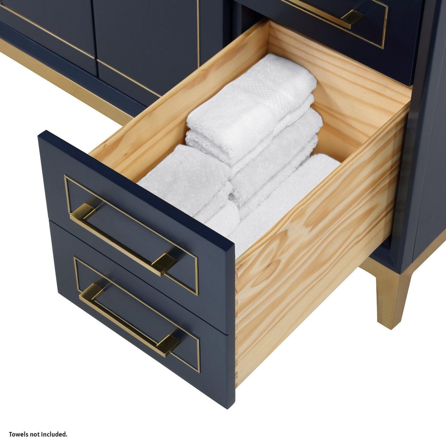 - Under-mount drawer glides with soft-close