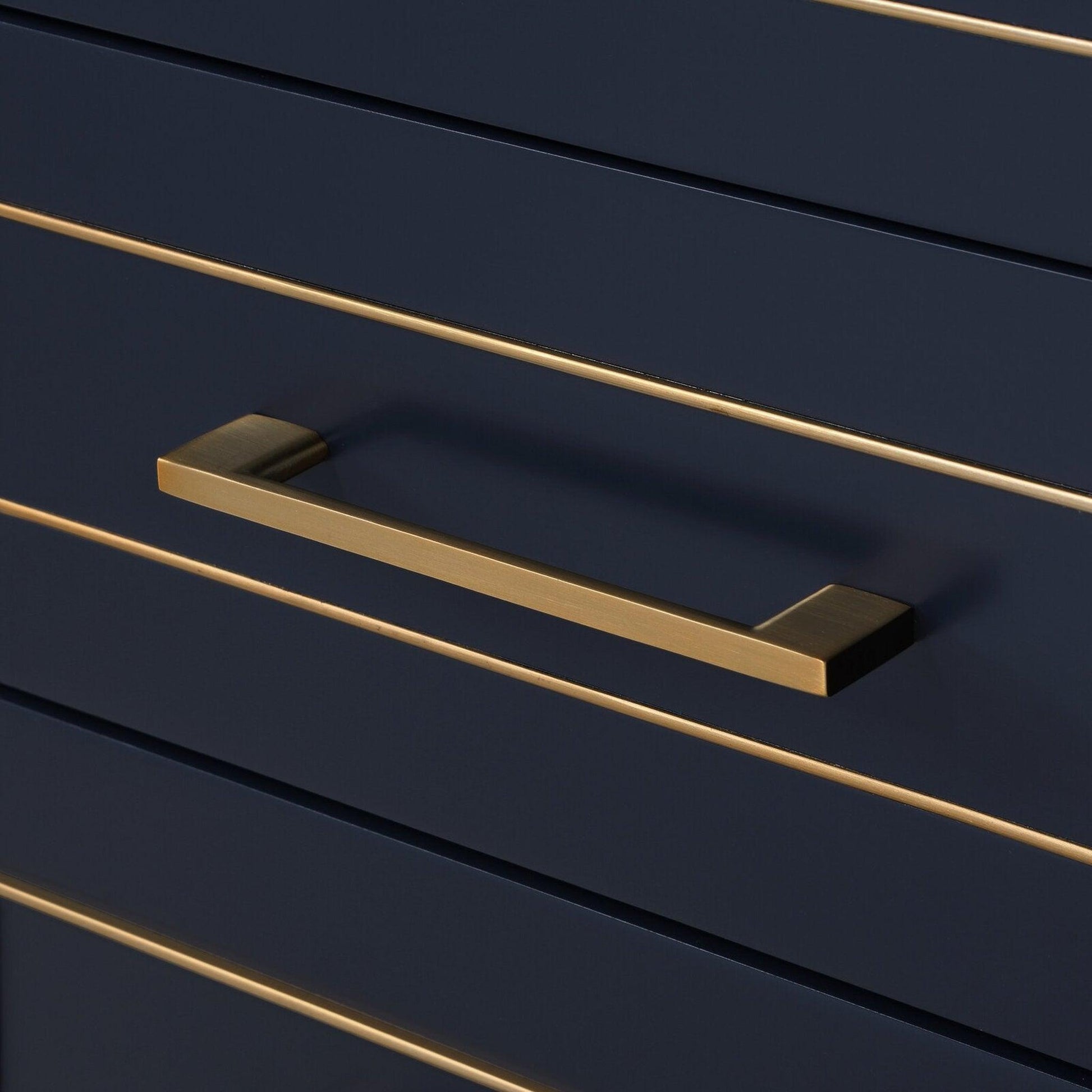 Inlaid Satin Brass and Brushed Nickel and matching door pulls combined with a 5-step soft-touch lacquer finish in Midnight Black, Pacific Blue or Satin White to radiate understated glamour.
