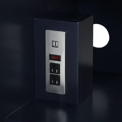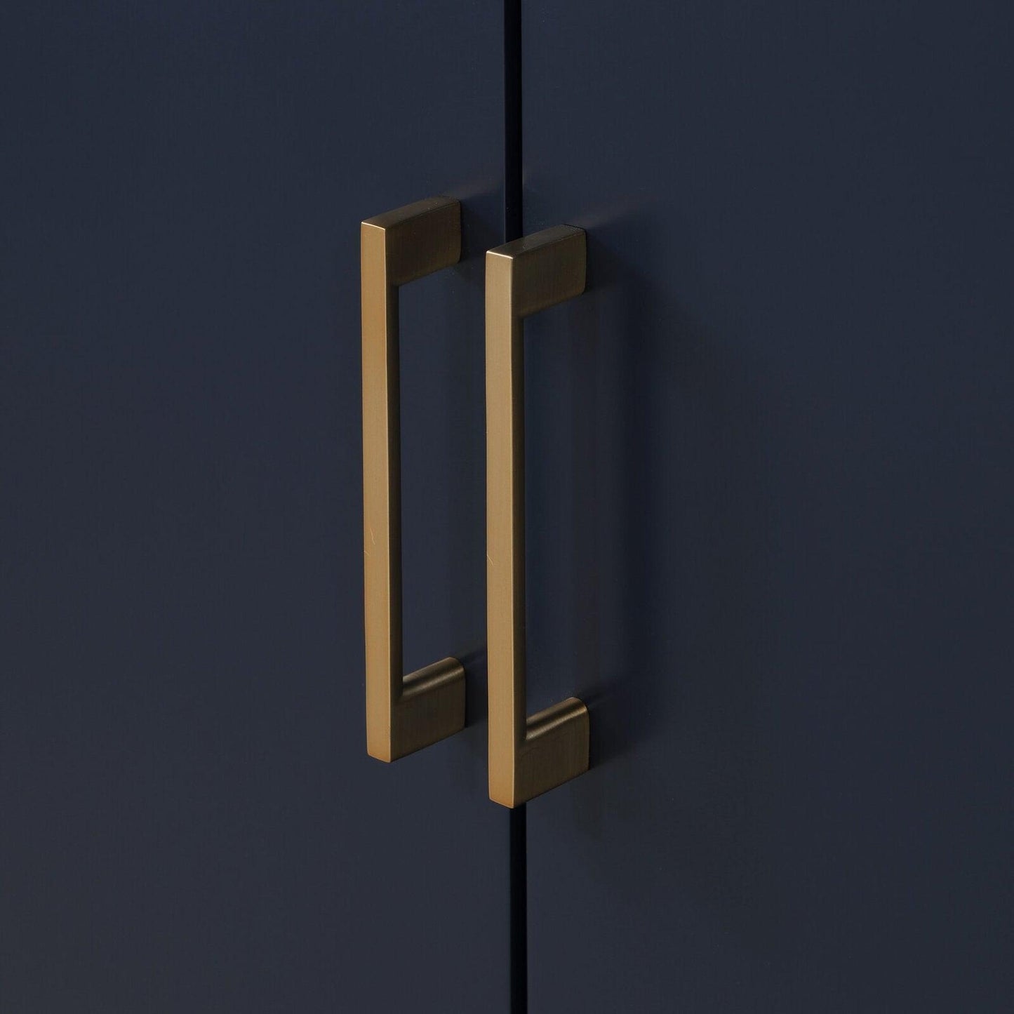 Inlaid Satin Brass and Brushed Nickel and matching door pulls combined with a 5-step soft-touch lacquer finish in Midnight Black, Pacific Blue or Satin White to radiate understated glamour.