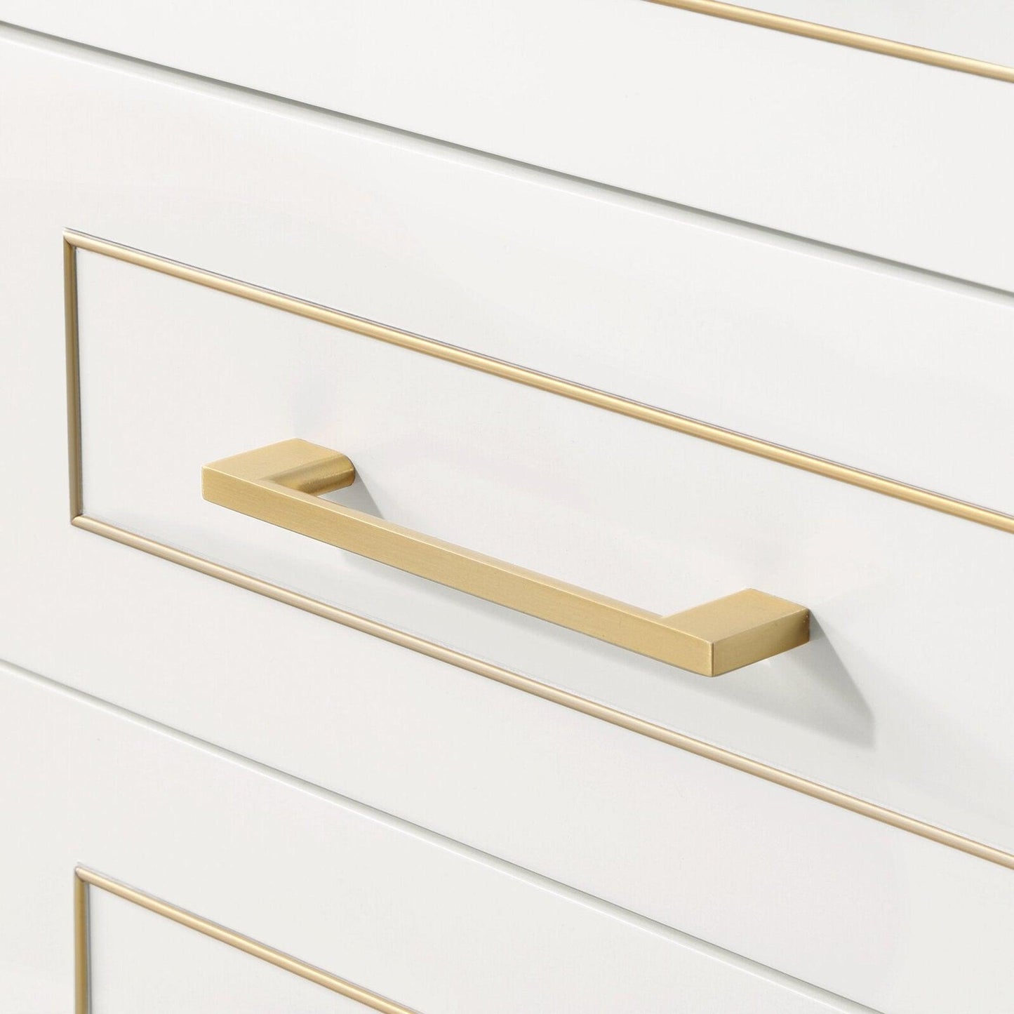 Inlaid Satin Brass and Brushed Nickel and matching door pulls combined with a 5-step soft-touch lacquer finish in Midnight Black, Pacific Blue or Satin White to radiate understated glamour.