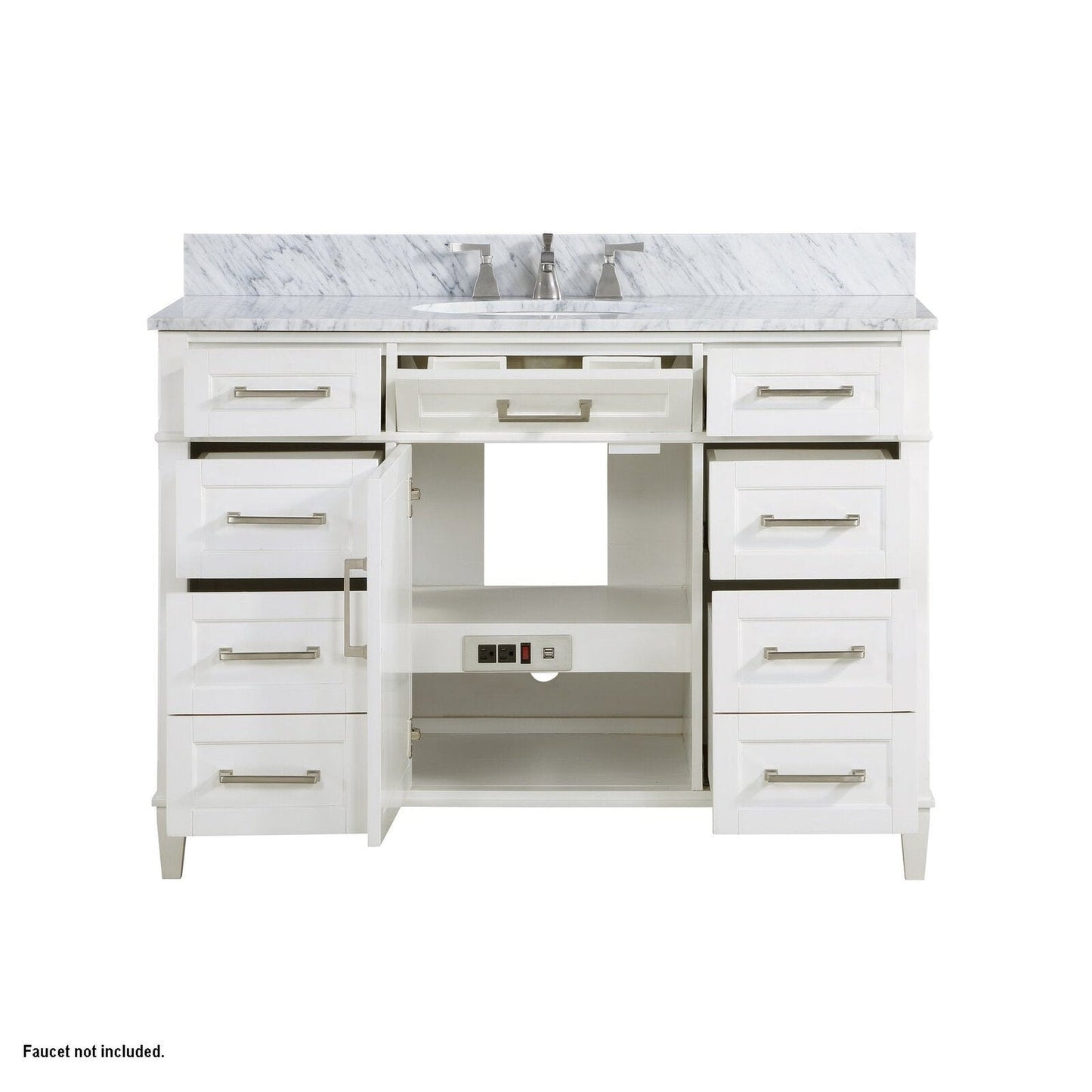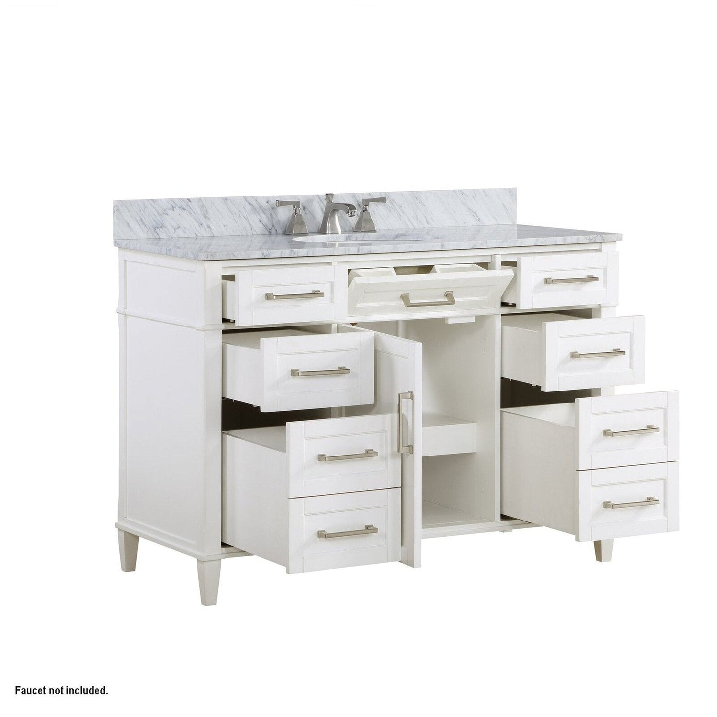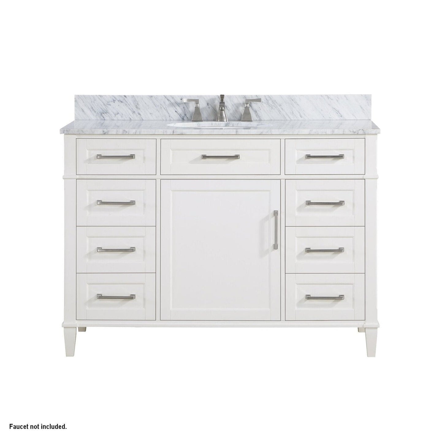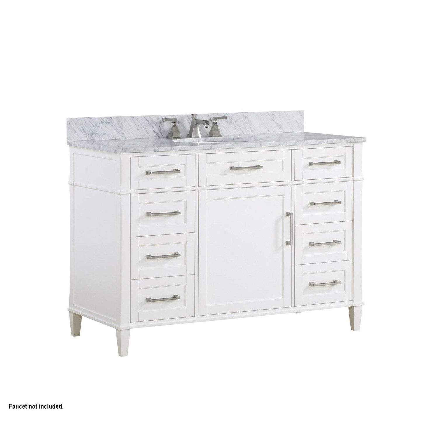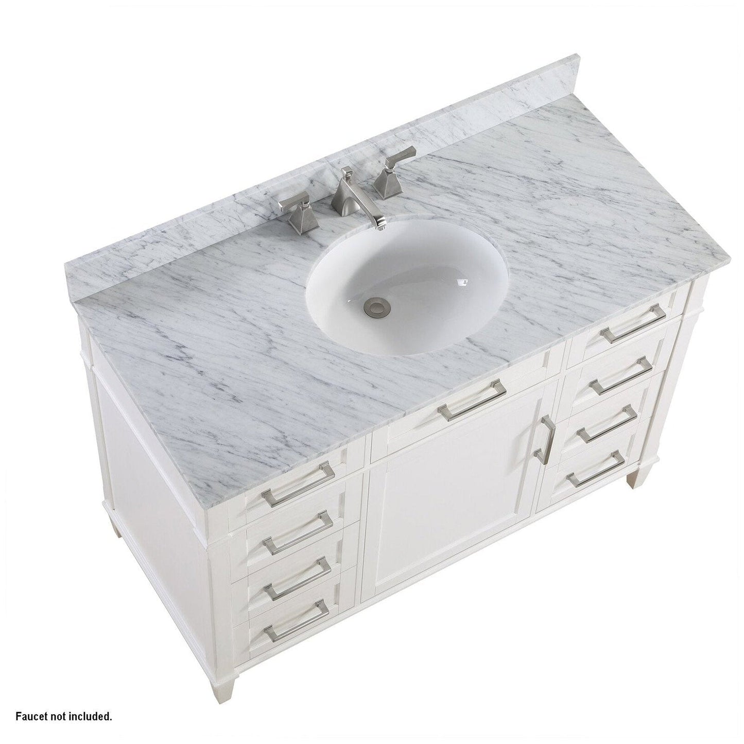 Bemma Design Montauk 48" Pure White Solid Wood Freestanding Bathroom Vanity With Single 3-Hole Italian Carra Marble Vanity Top, Oval Undermount Sink, and Backsplash
