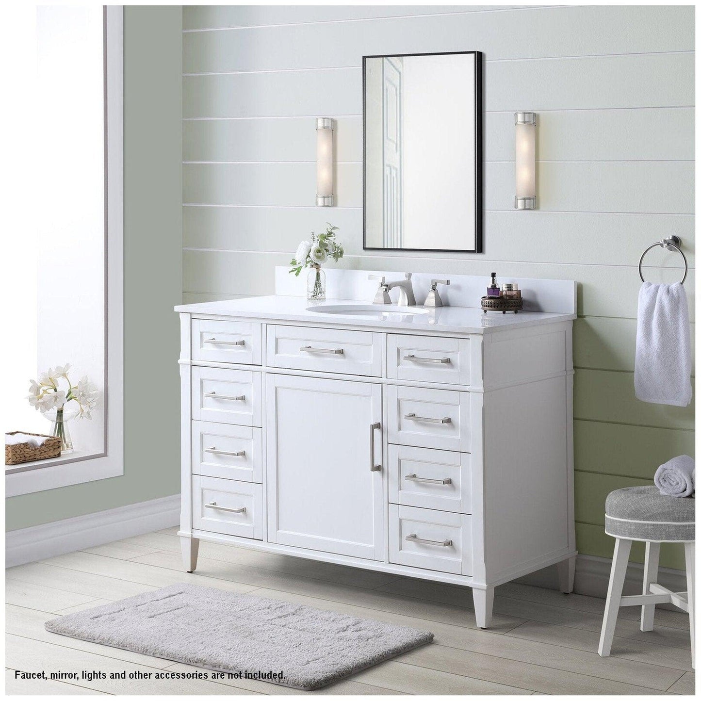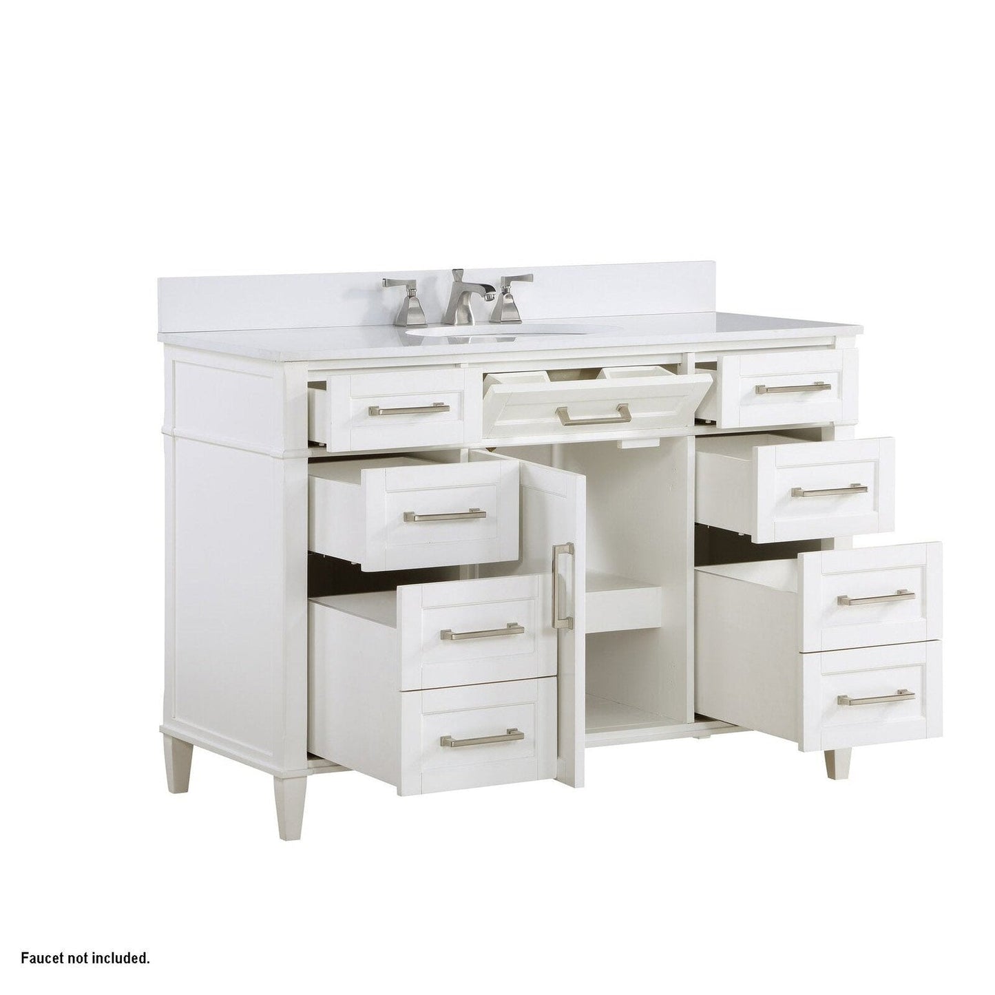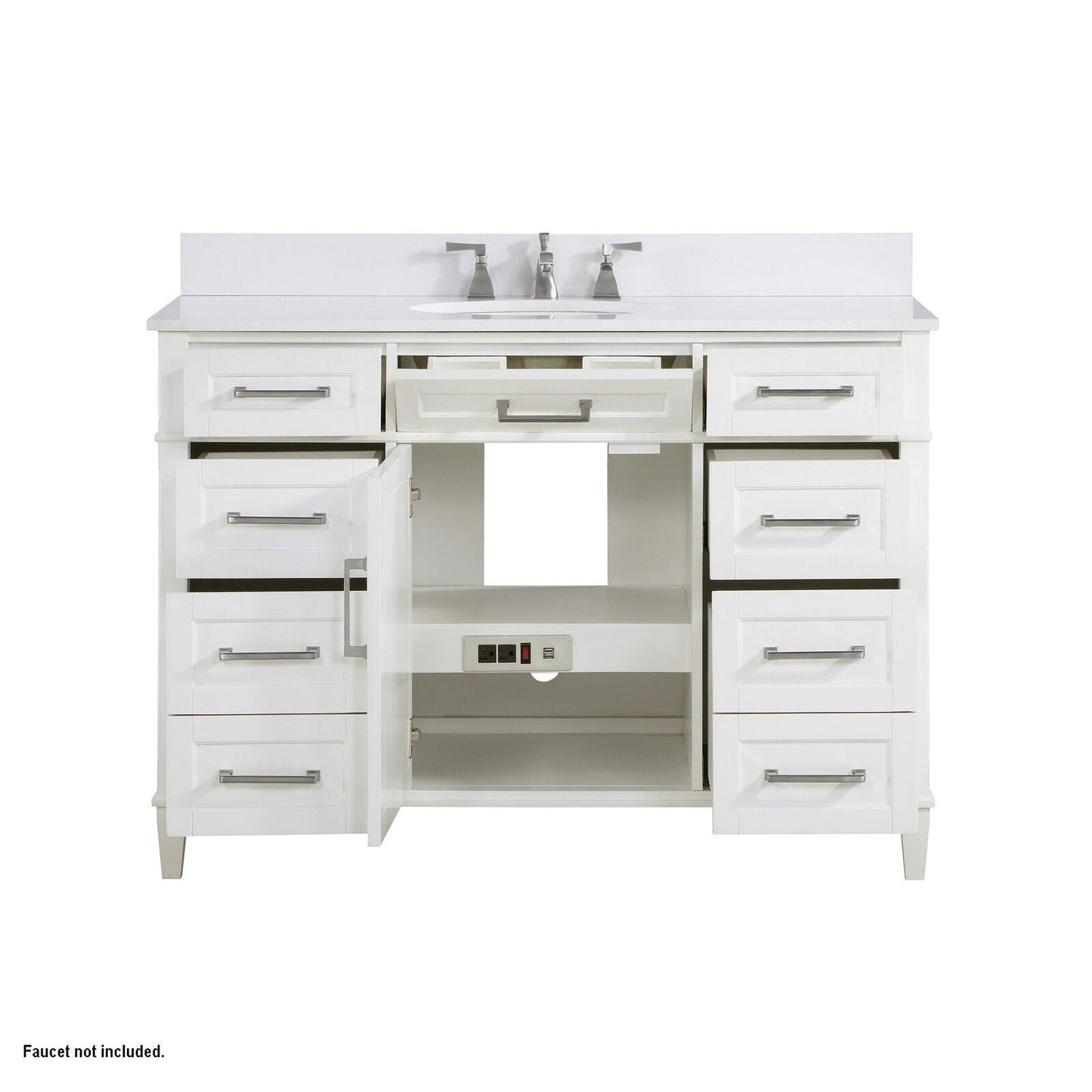 Bemma Design Montauk 48" Pure White Solid Wood Freestanding Bathroom Vanity With Single 3-Hole White Quartz Vanity Top, Oval Undermount Sink, and Backsplash