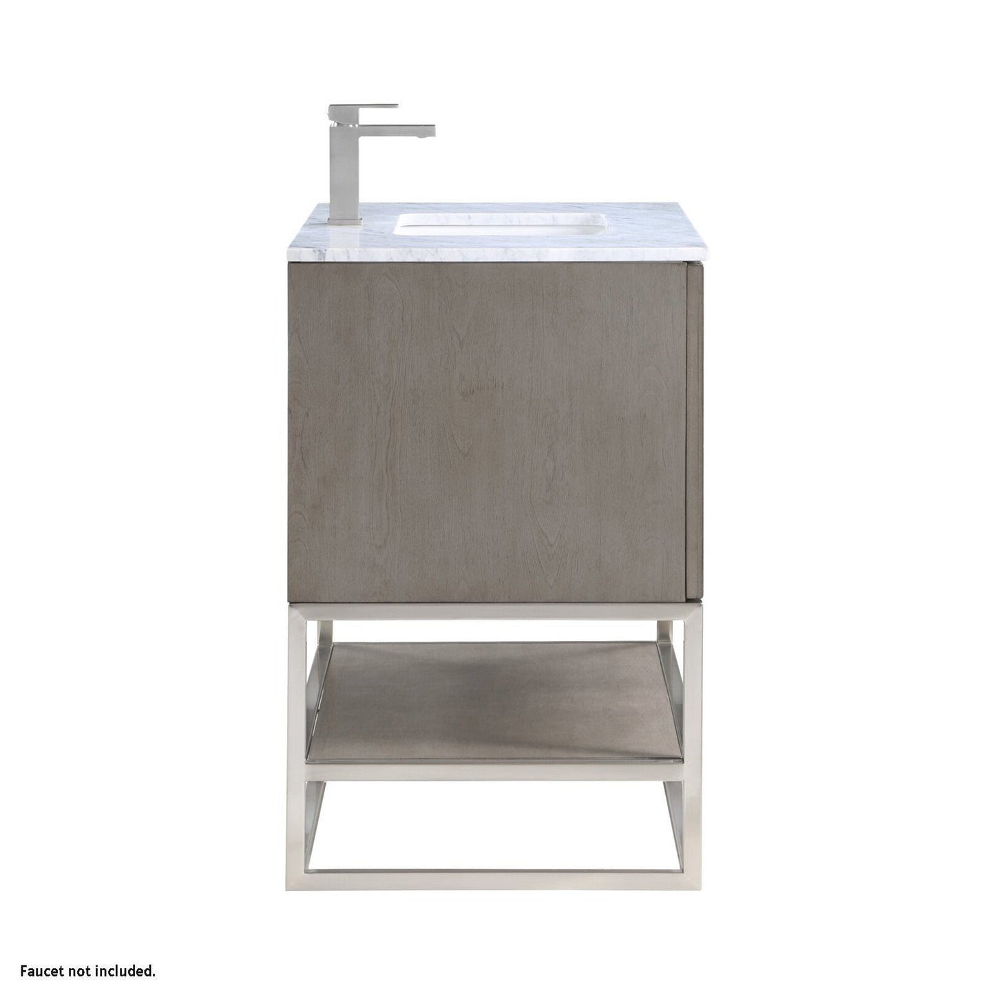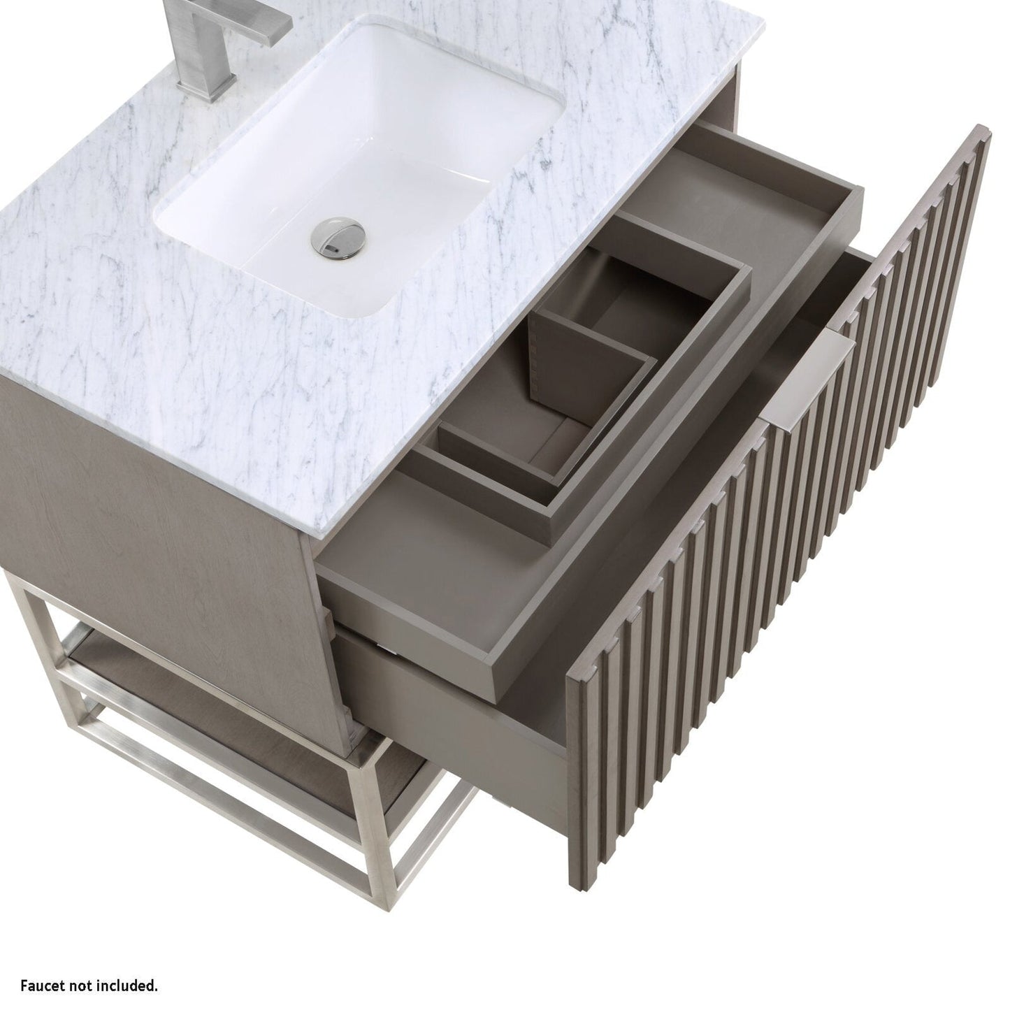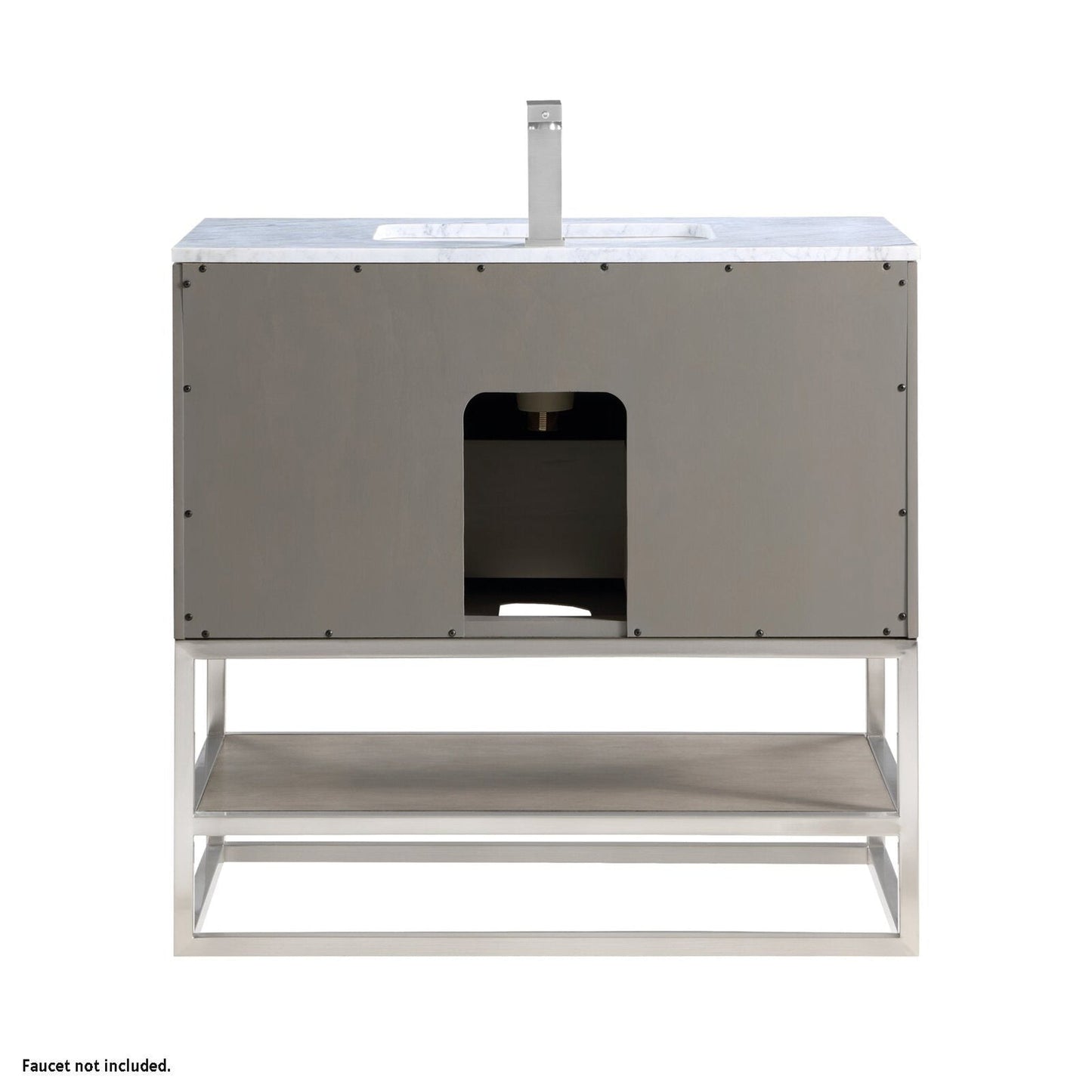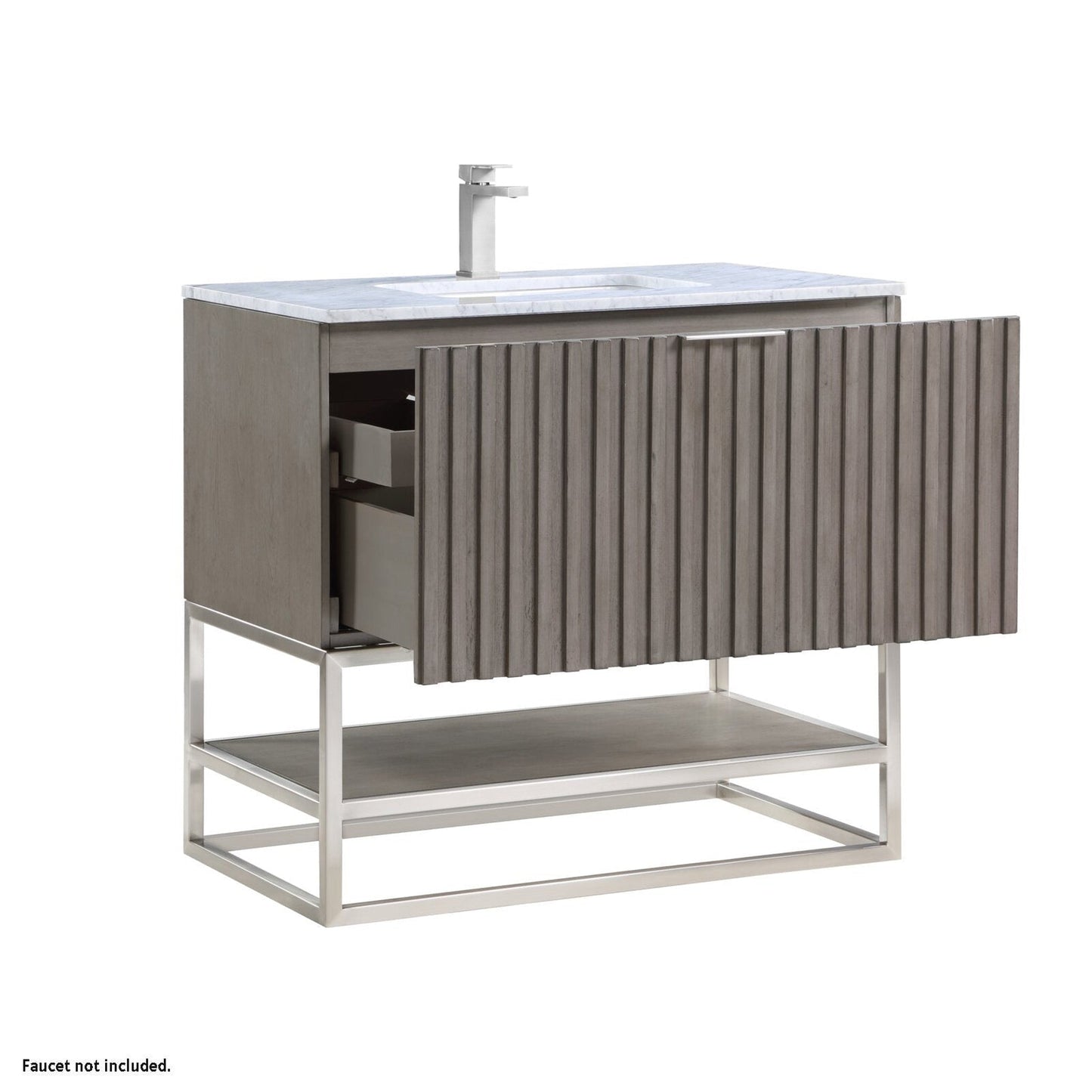 Bemma Design Terra 36" Graywash Solid Wood Freestanding Bathroom Vanity With Single 1-Hole Italian Carra Marble Vanity Top, Rectangle Undermount Sink and Brushed Nickel Trim