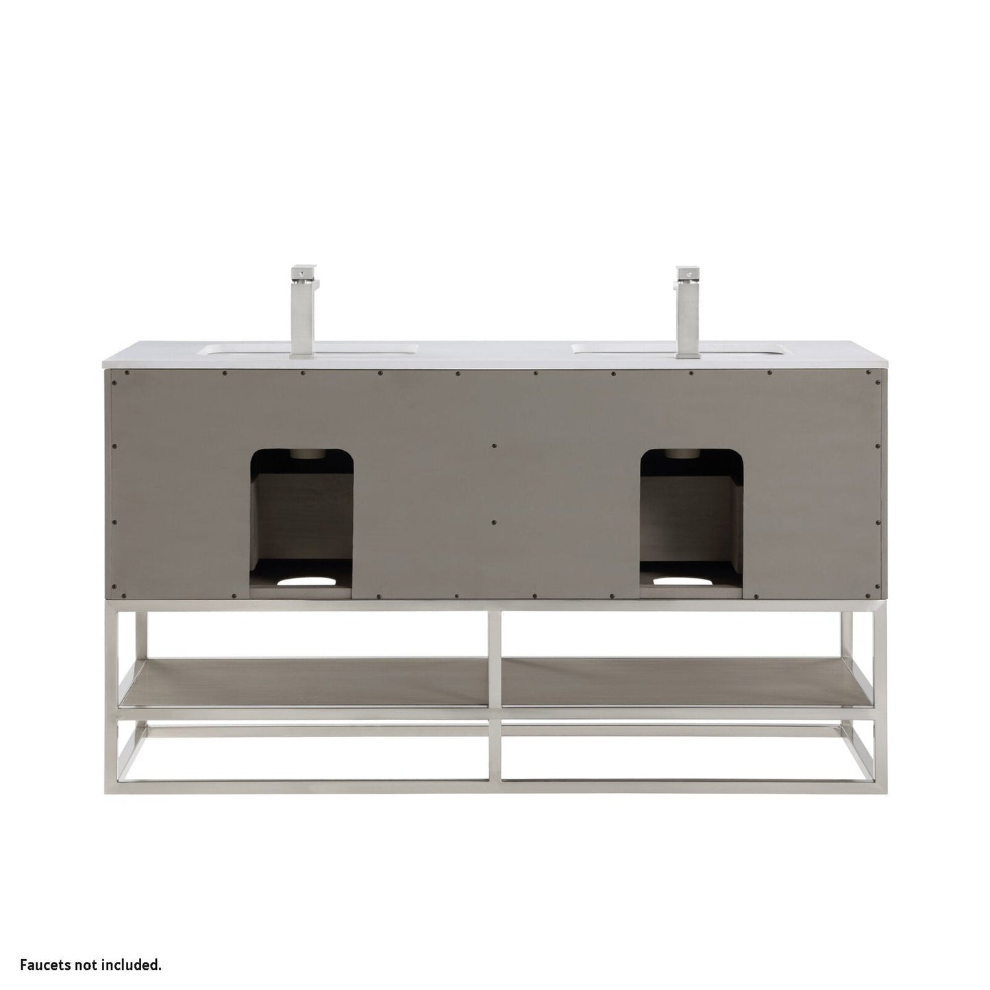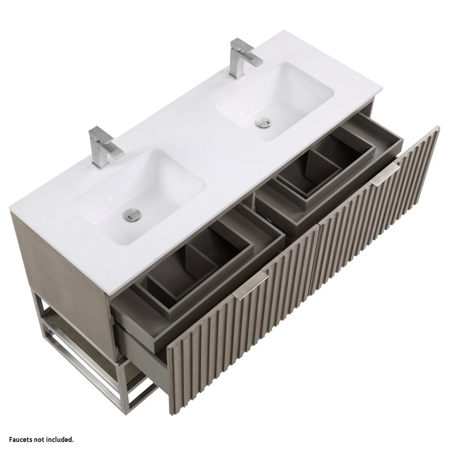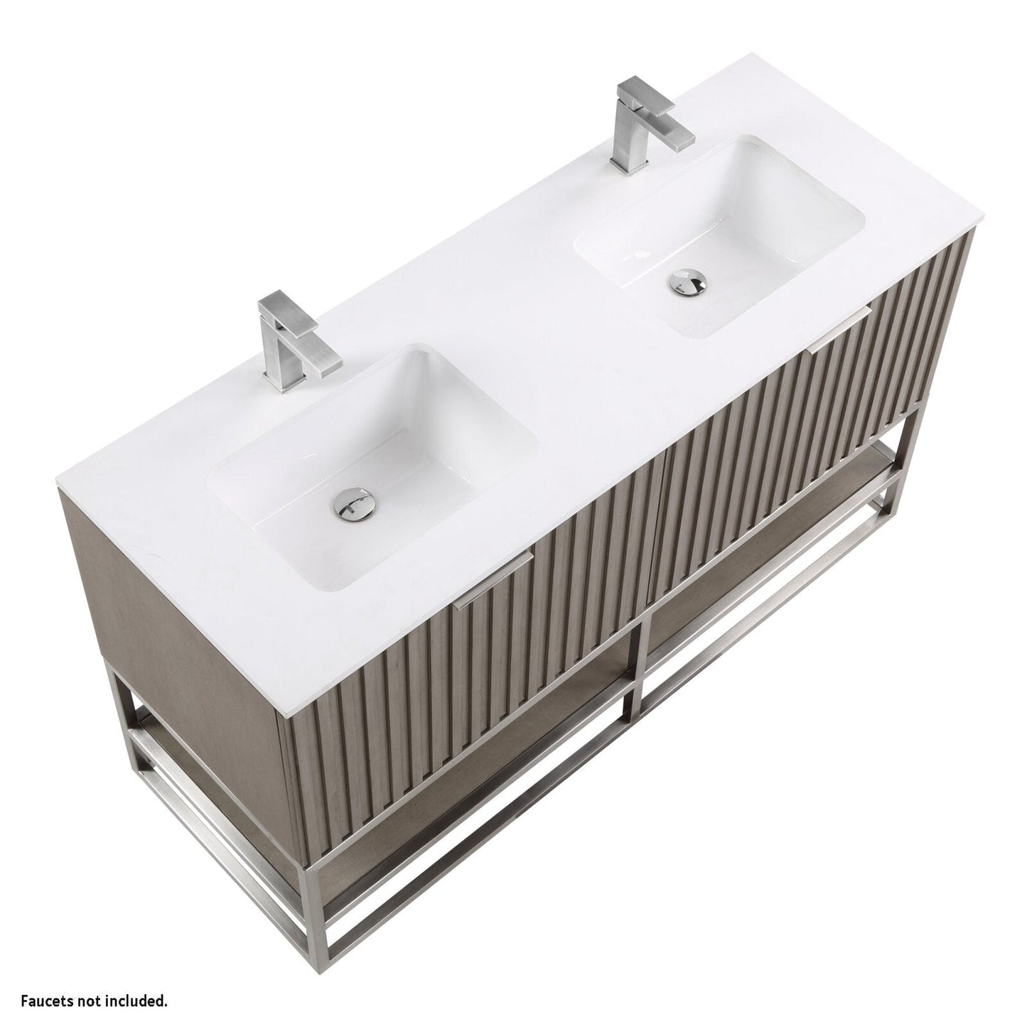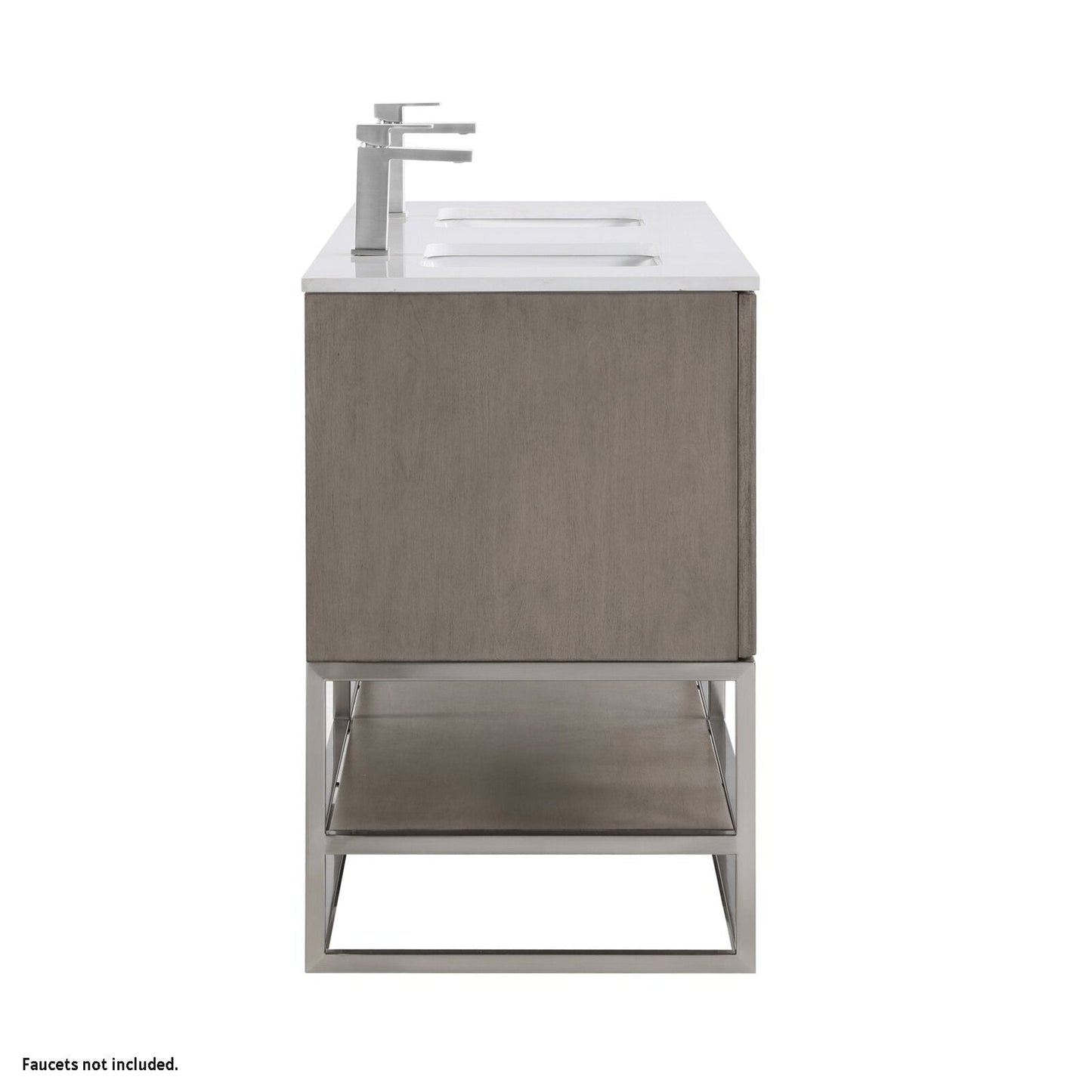 Bemma Design Terra 60" Graywash Solid Wood Freestanding Bathroom Vanity With Double 1-Hole White Quartz Vanity Top, Rectangle Undermount Sink and Brushed Nickel Trim