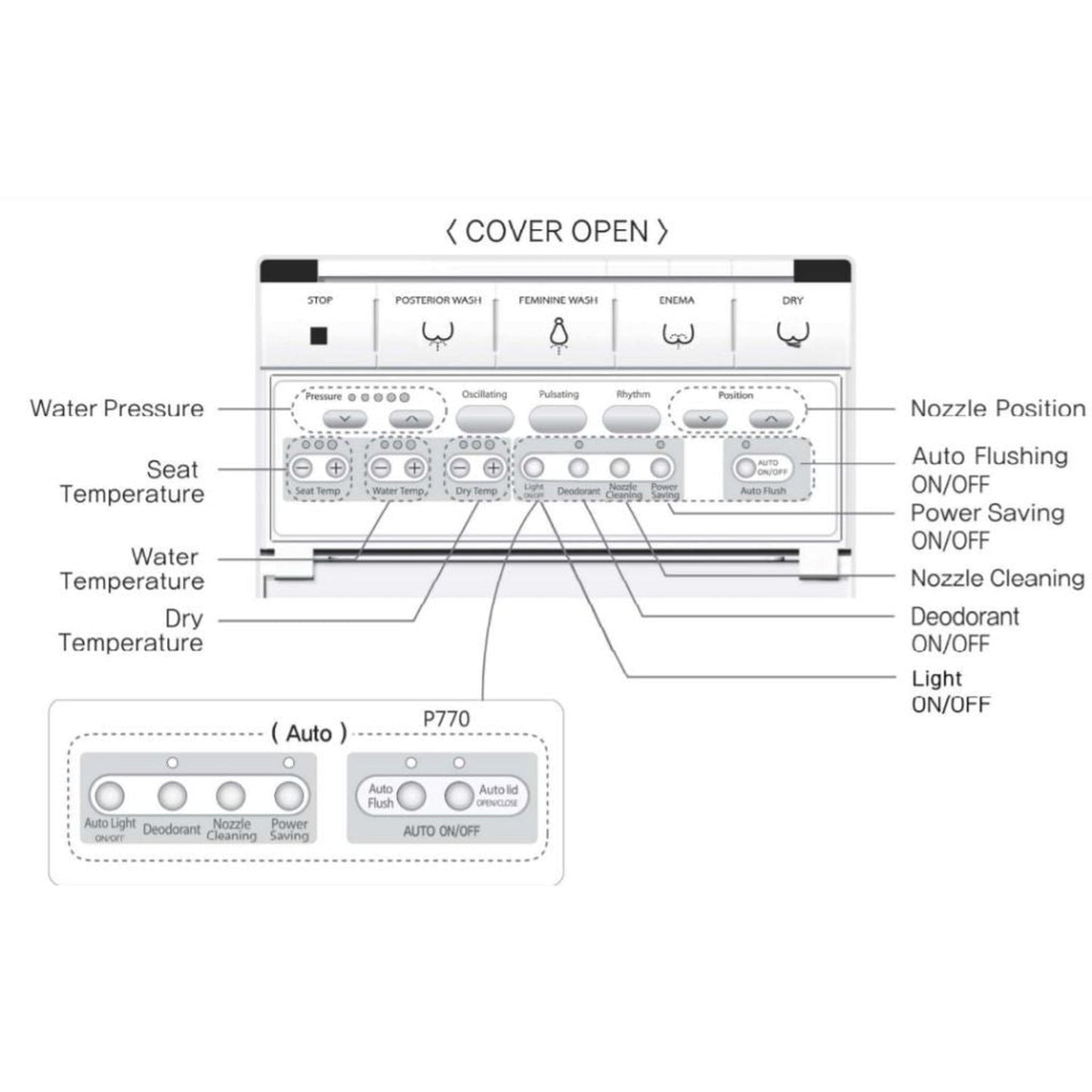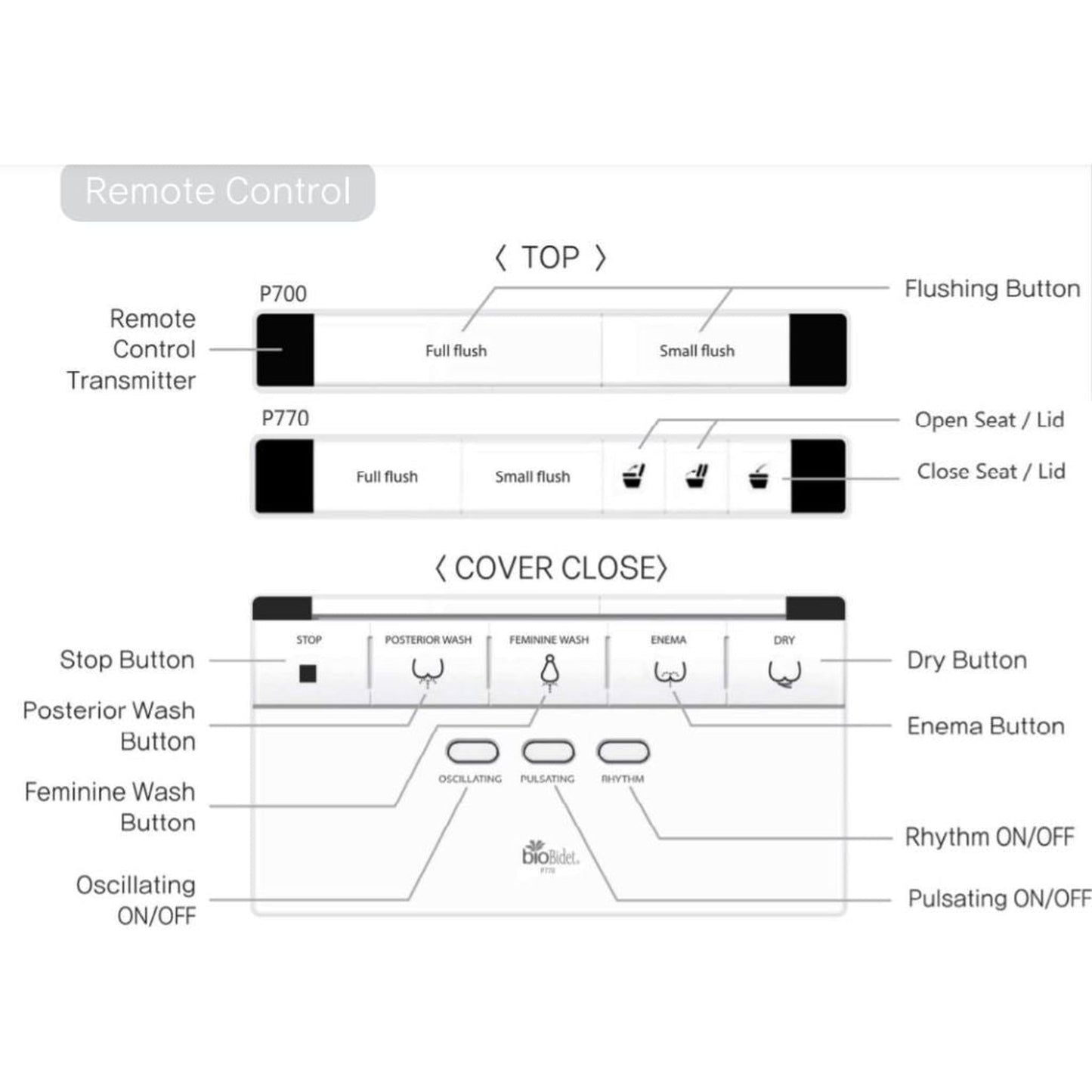 Wireless remotes come in handy if you want the convenience of using a handheld controller to operate your bidet without having to reach to your side or look down. Wireless remote controls can be used as handheld or wall mounted on either side you prefer. Remote type models are also equipped with simple side panel on the unit. In contrast to wireless remote type models, side panel models come with a fixed side control panel directly attached to the seat on the right-hand side of the user. This type of bidet is more popular in households with children since they cannot misplace or damage the remote control. Wireless Remote : BB-2000, BB-1000, USPA6800, BB-400 Side Panel : BB-1700, BB-800, BB-600