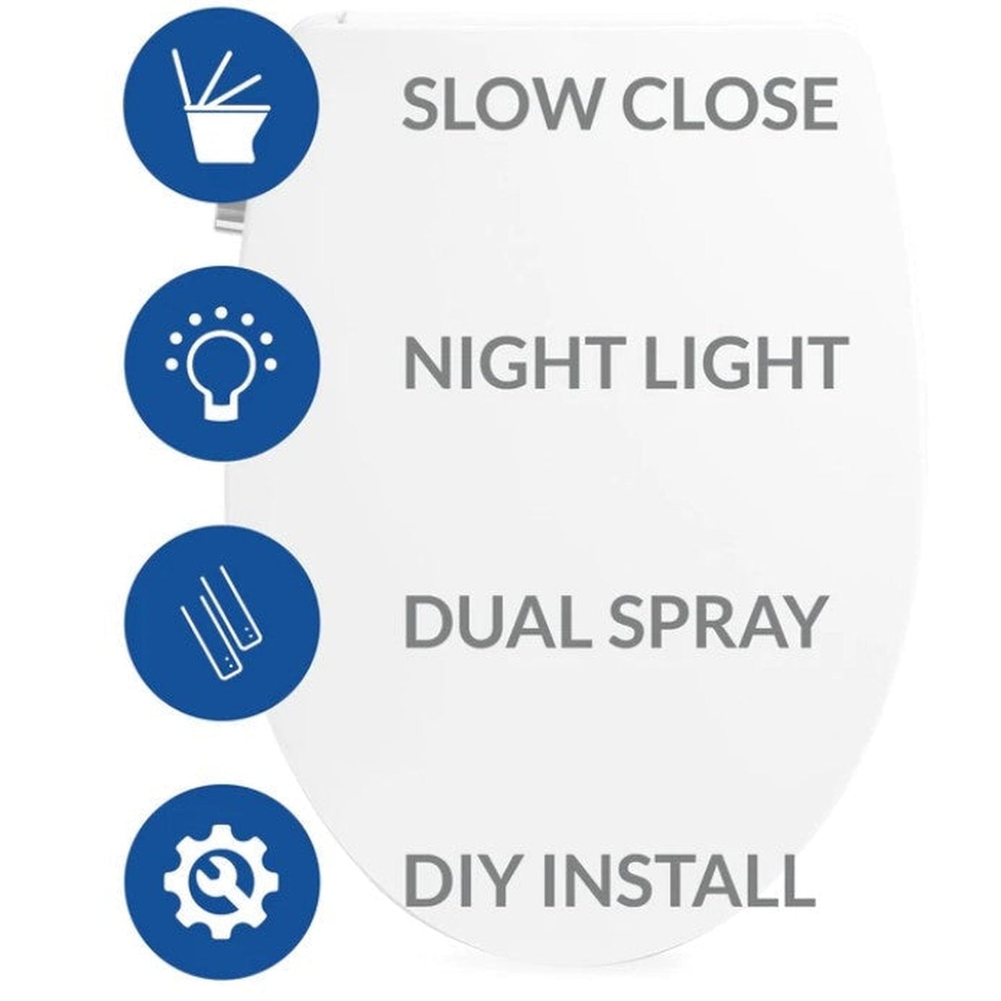 Bio Bidet Slim Zero 14" White Elongated Non-Electric Bidet Toilet Seat With Night Light, Dual Nozzle And Built-in Side Lever